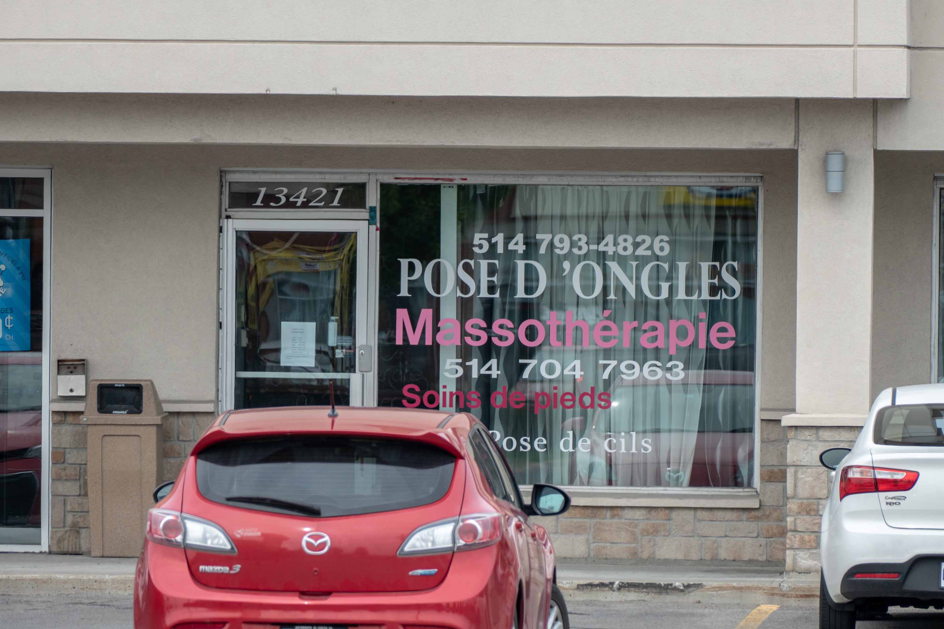 Le local choisi, au 13421 du boulevard Curé-Labelle, est voisin du SuperClub Vidéotron, dont le franchisé est propriétaire de l'immeuble et qui compte six commerces. Actuellement, le local est occupé par un service de pose d'ongles, de massothérapie et de soins des pieds.