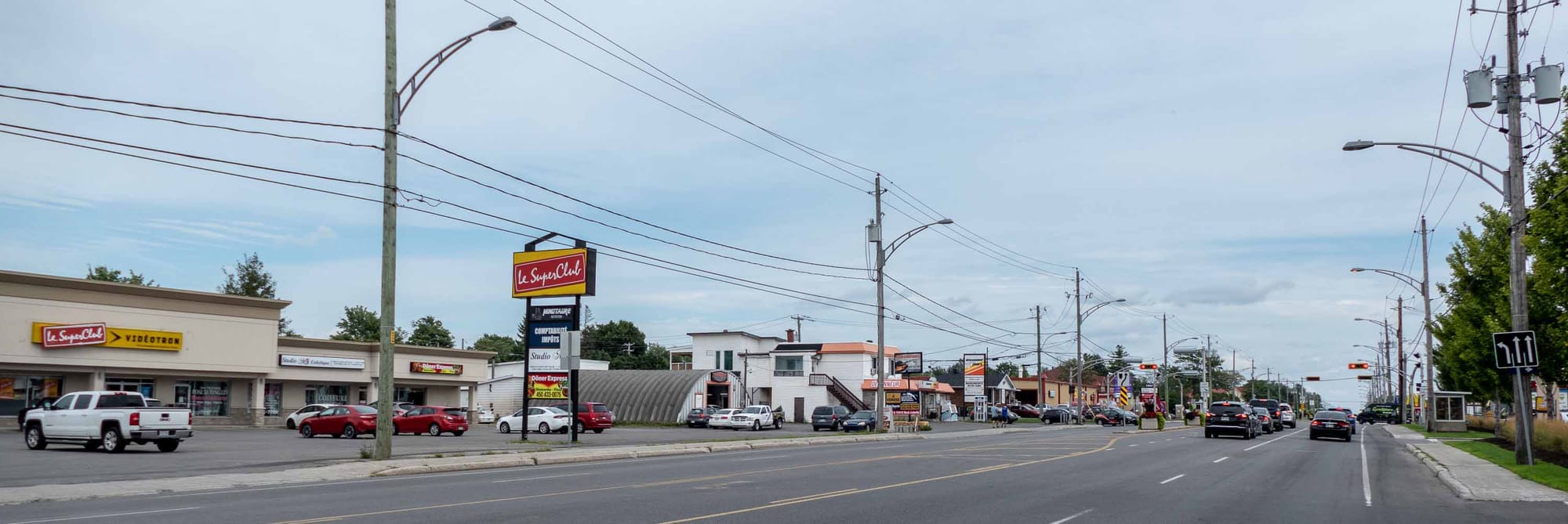 À côté du club vidéo, en face de la pharmacie et de l'épicerie