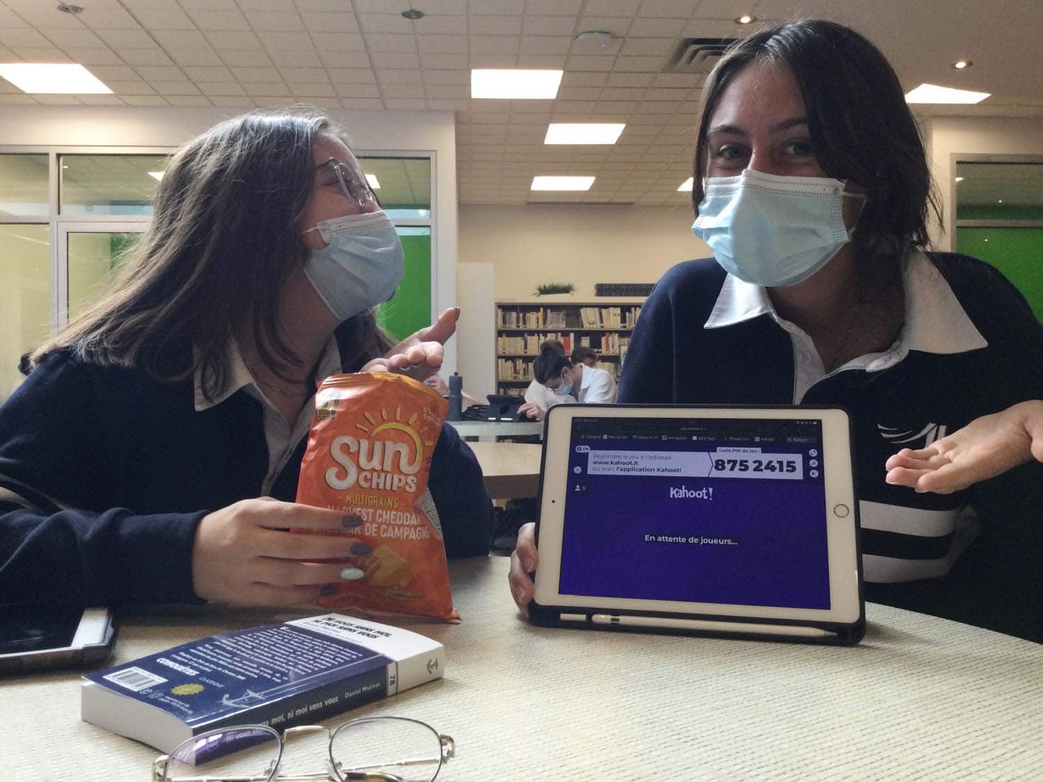 Elle anime un kahoot accompagnée de Vyvy qui mange des grignotines de type croustilles