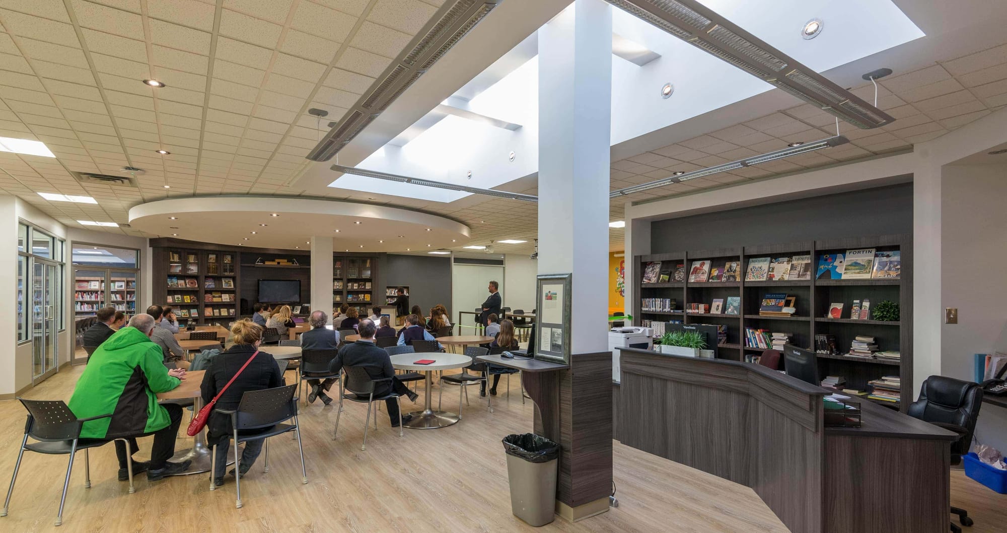 L'Académie Lafontaine, une école privée d'enseignement primaire et secondaire installée à Saint-Jérôme depuis 30 ans, inaugurait le 20 mars une bibliothèque qui s'inscrit dans ce courant, avec un peu moins de livres, mais beaucoup plus d'espaces de création, de rencontre, de lecture et d'activités de groupe, et, bien sûr, des espaces plus zen où il est évidemment possible de s'installer en paix et de se perdre dans un bon livre...
