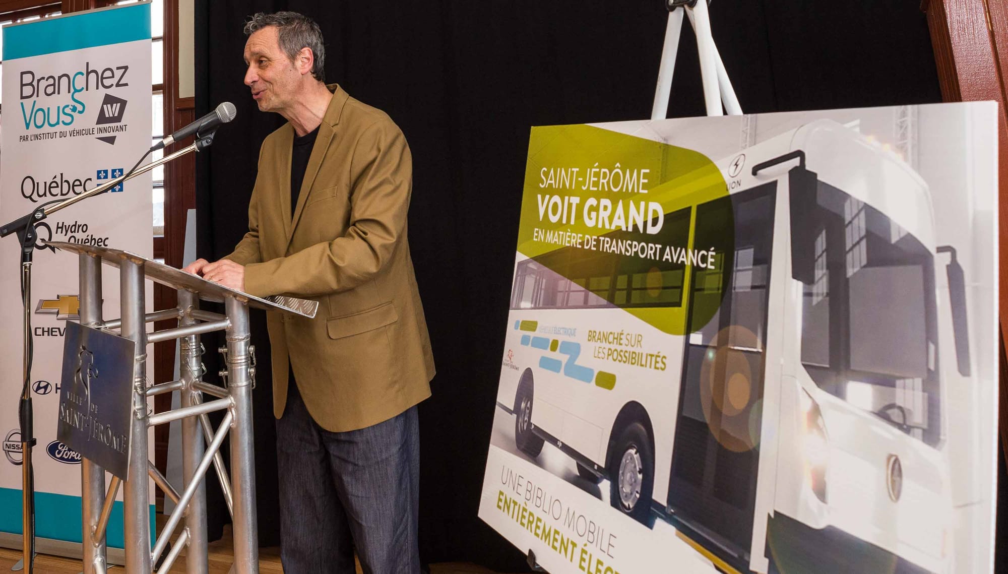 Le maire estime que Saint-Jérôme «regarde plus que jamais vers l’avenir en matière de transport avancé. Ce minibus développé ici et transformé en biblio mobile saura certainement enrichir notre programmation de loisir tout en participant à l’effort de réduction des gaz à effet de serre», dit-il.