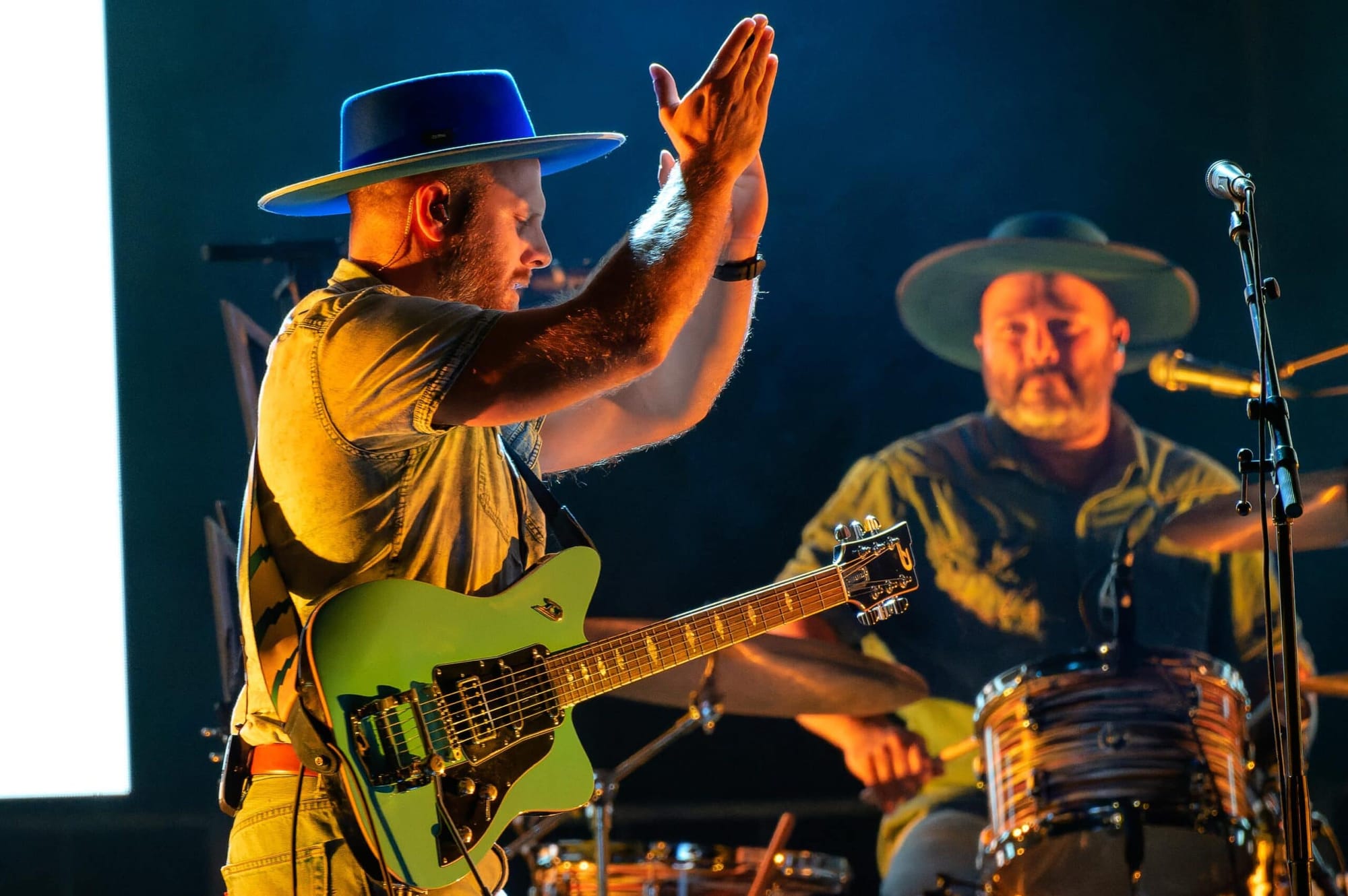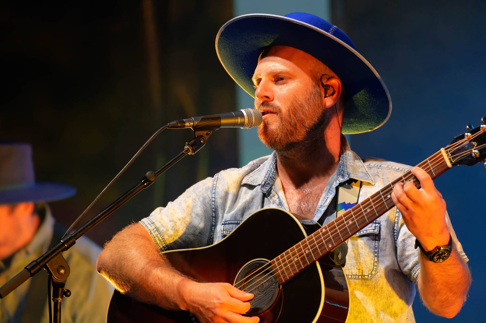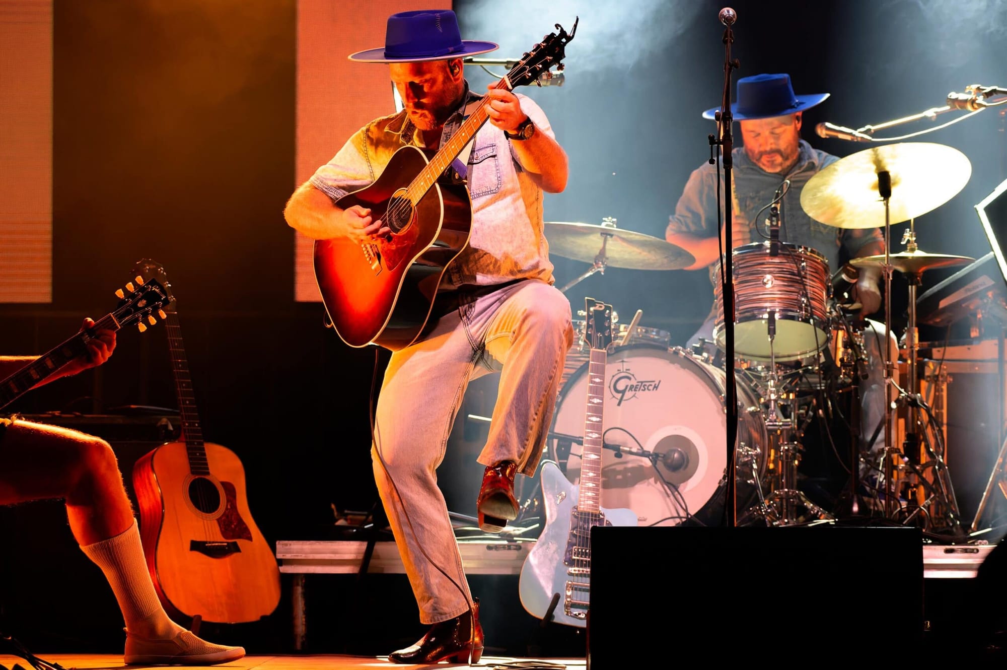 Le groupe entièrement vêtu de denim, Bleu Jeans Bleu, est venu donner un des seuls spectacles en plein air au centre-ville de Saint-Jérôme depuis le début du confinement dû à la COVID-19, il y a maintenant plus d'un an et demi.