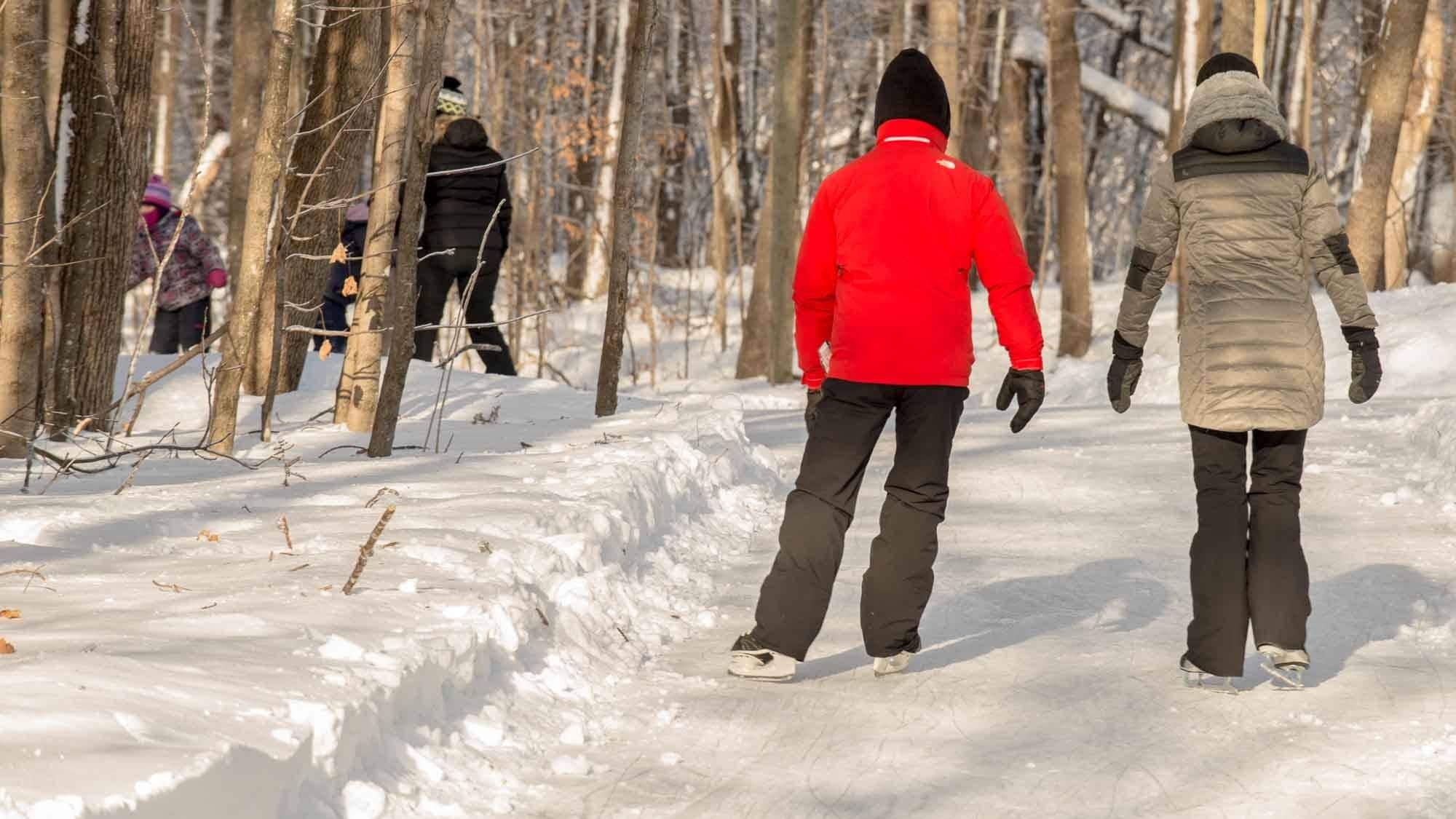 Le Parc régional Bois de Belle-Rivière à Mirabel et son parc de glace offrent des activités hivernales pour toute la famille.