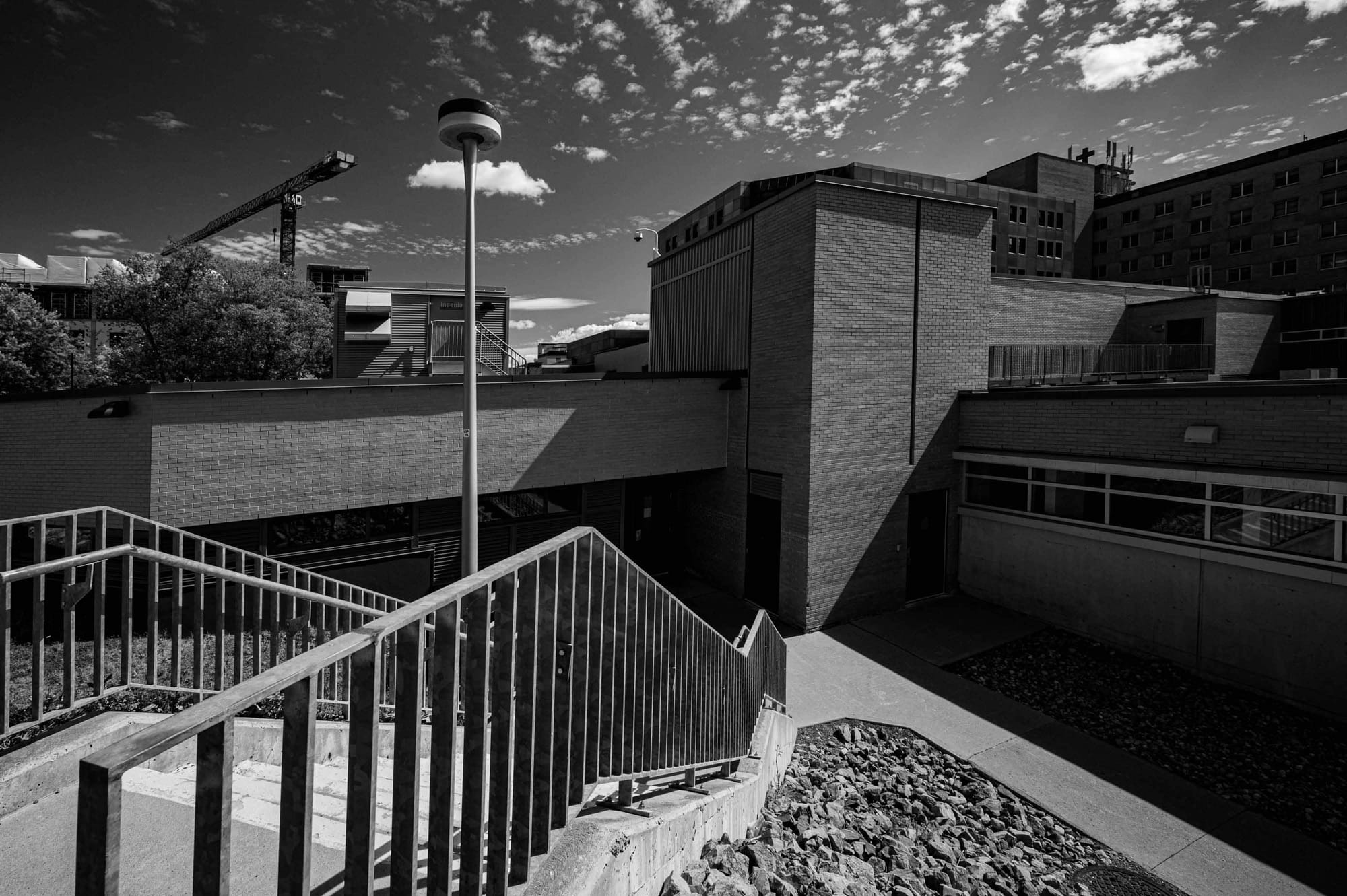 L'intérieur d'une des arches du monument commémorant la première église de Saint-Jérôme, dans le parc Labelle.Le ciel réfléchi sur le vitrage du Théâtre Gilles-Vogneault.Il manque un morceau à ce poteau, qui a un jumeau pour le supporter.Tiens tiens, la clôture de la gare intermodale a besoin de peinture.S'asseoir au restaurant, sans avoir peur, manger calmement des oeufs et du bacon en lisant son journal au soleil.... un jour.Besoin d'entretien.Parfois, il suffit de laisser la lumière faire des dessins.On a beau passer tous les jours au même endroit, à chaque fois le ciel est complètement nouveau.La cathédrale, lieu d'ombre et de lumière.Certains murs du centre-ville de Saint-Jérôme méritent d'être regardés de près.On n'est jamais tout à fait seul.Tout est une question de point de vue.Comment ne pas songer aux combats et aux peines qui se vivent tous les jours dans les hôpitaux. Inutile de s'en cacher. Mais il faut poser un regard lucide, y voir aussi de l'amour, de l'espoir, ainsi que le courage et l'incroyable générosité de ceux qui y travaillent.