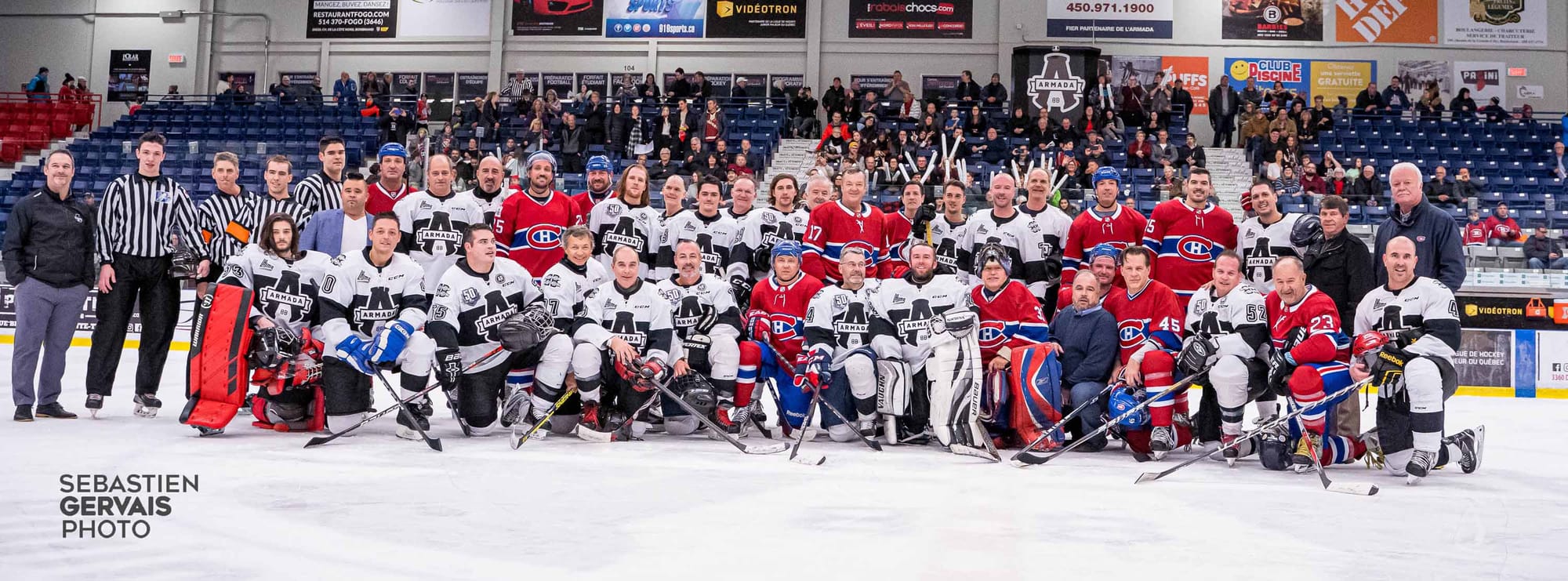 Près de 1000 personnes étaient présentes dans l’amphithéâtre du Centre Sports Rousseau pour voir jouer les légendes du hockey, mais surtout pour encourager l’équipe locale composée de 22 joueurs provenant de différentes entreprises de la région.