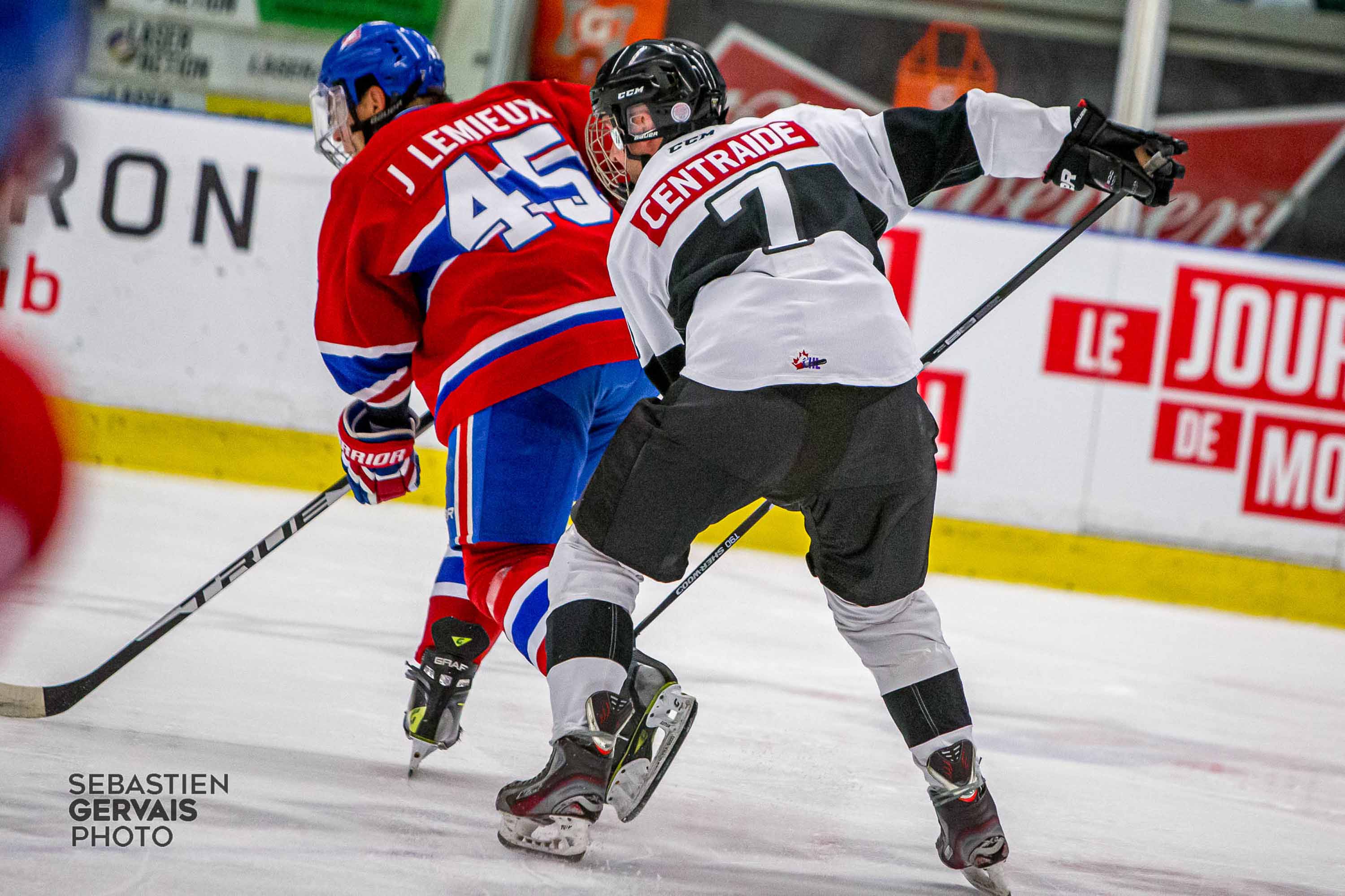 L'équipe «locale» portait le chandail de l’Armada Blainville-Boisbriand qui avait été modifié à l’effigie de Centraide Laurentides pour une soirée.