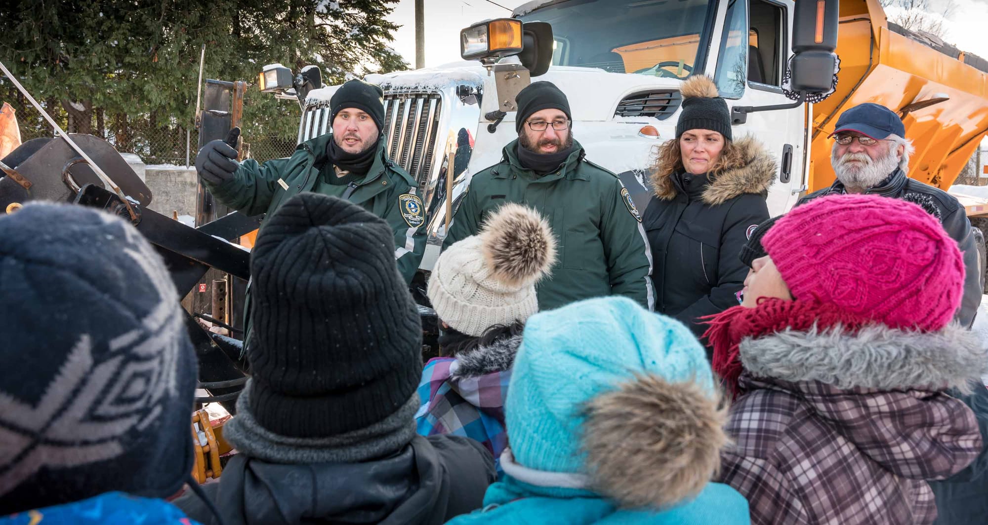 Quant aux élèves de l’école Sainte-Paule, ils sont montés à bord d'un véhicule de déneigement de la Ville. Un policier, deux contrôleurs routiers et un employé des travaux publics étaient sur place pour leur rappeler les comportements sécuritaires à adopter.