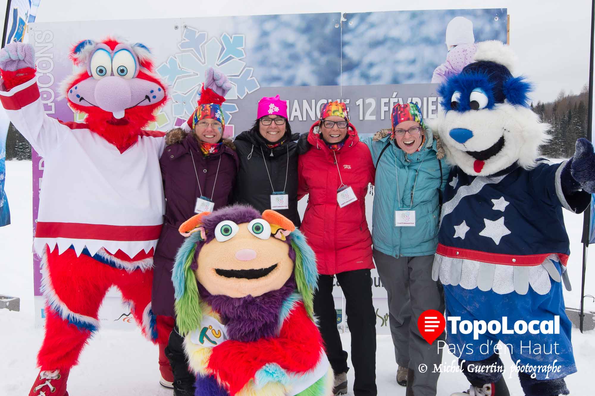 Voici les quatre organisatrices des Sa'Coches qui se sont impliquées à fond dans l'organisation: Nathalie Vallières, Danielle Tremblay, Dominique St-Louis et Julie Roy, entourées des mascottes qui ont fait de l'animation durant la journée.