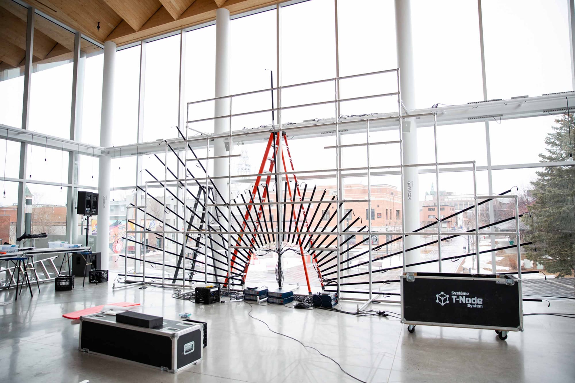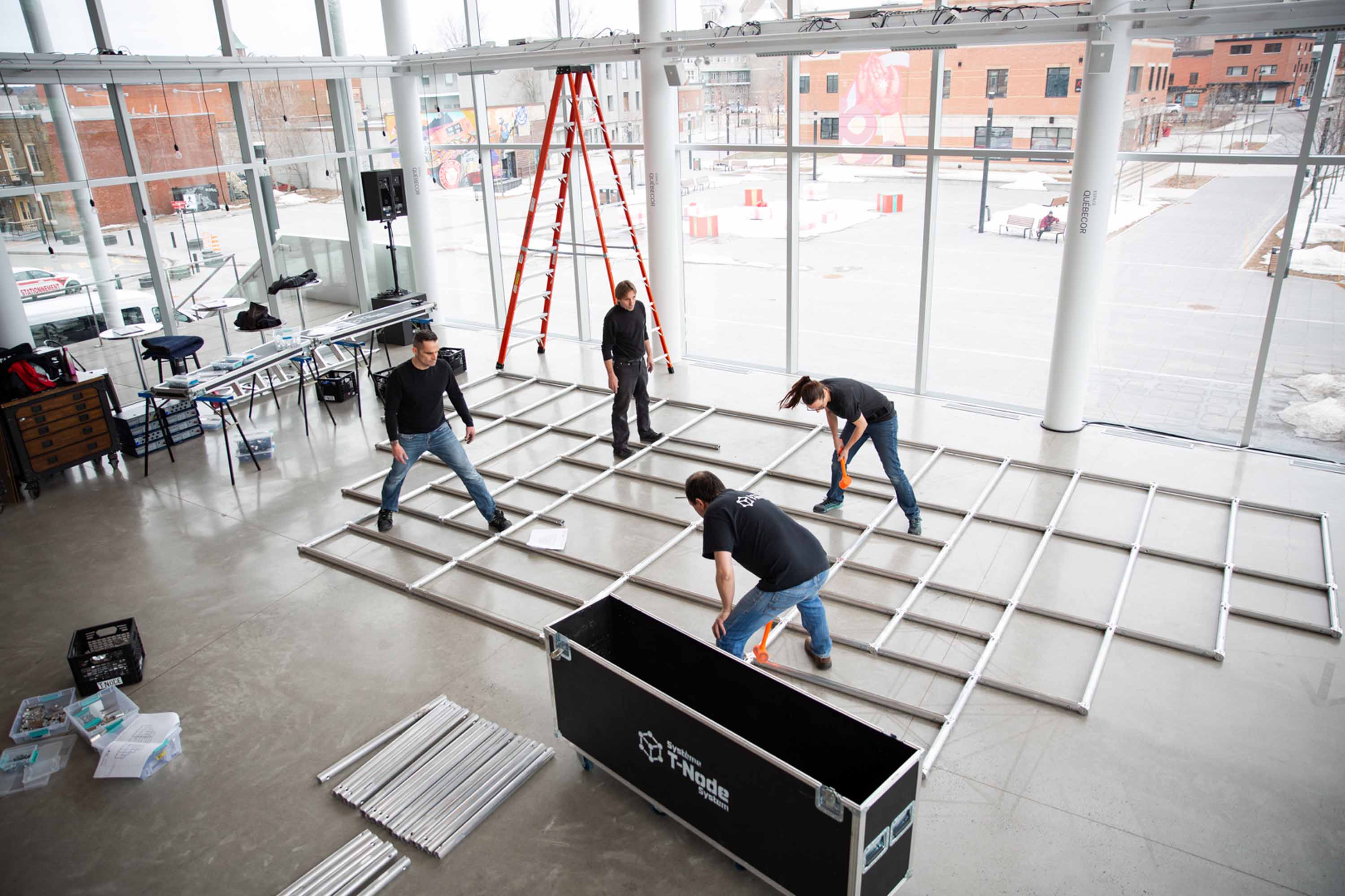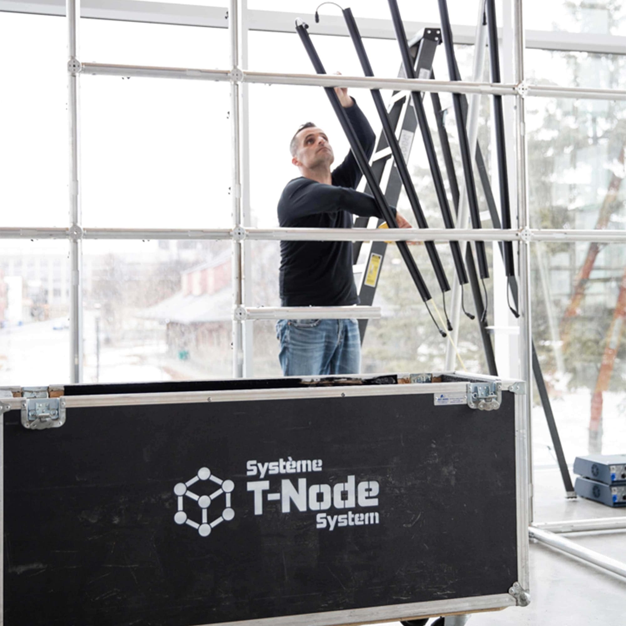 C'est une initiative de Jean-François Tétrault d'Espace 3D, une entreprise qui conçoit à partir de Saint-Jérôme et installe un peu partout des structures lumineuses modulaires, programmables et réutilisables, un système qu'il appelle T-Node. « Avec mon expérience en dessin technique et en électronique, j'ai créé une sorte de jeu de Lego grandeur nature que je peux illuminer comme je veux », dit-il pour vulgariser son système.