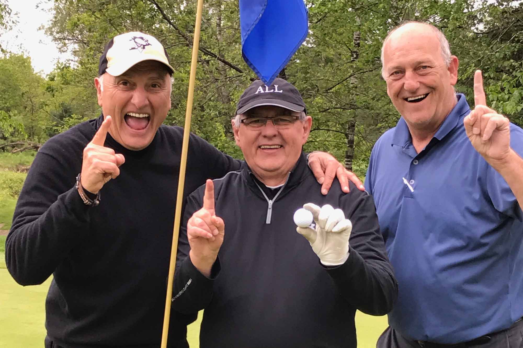 C'est en compagnie de Ron Fournier et de Christian Jasmin que Gérard St-Germain a fait un trou d'un coup au 13e trou du golf La Vallée de Sainte-Adèle, une distance de 123 verges.Il n'y a pas d'âge pour faire un trou d'un coup. C'est ce qu'a réalisé Claude Morin à 87 ans alors qu'il réussissait son premier trou d'un coup. C'est sa conjointe Jeannot Lachapelle qui a été témoin de cette prouesse au 4e du Club de golf Alpine. Le professionnel Christian Lauzon était fier de le féliciter.
