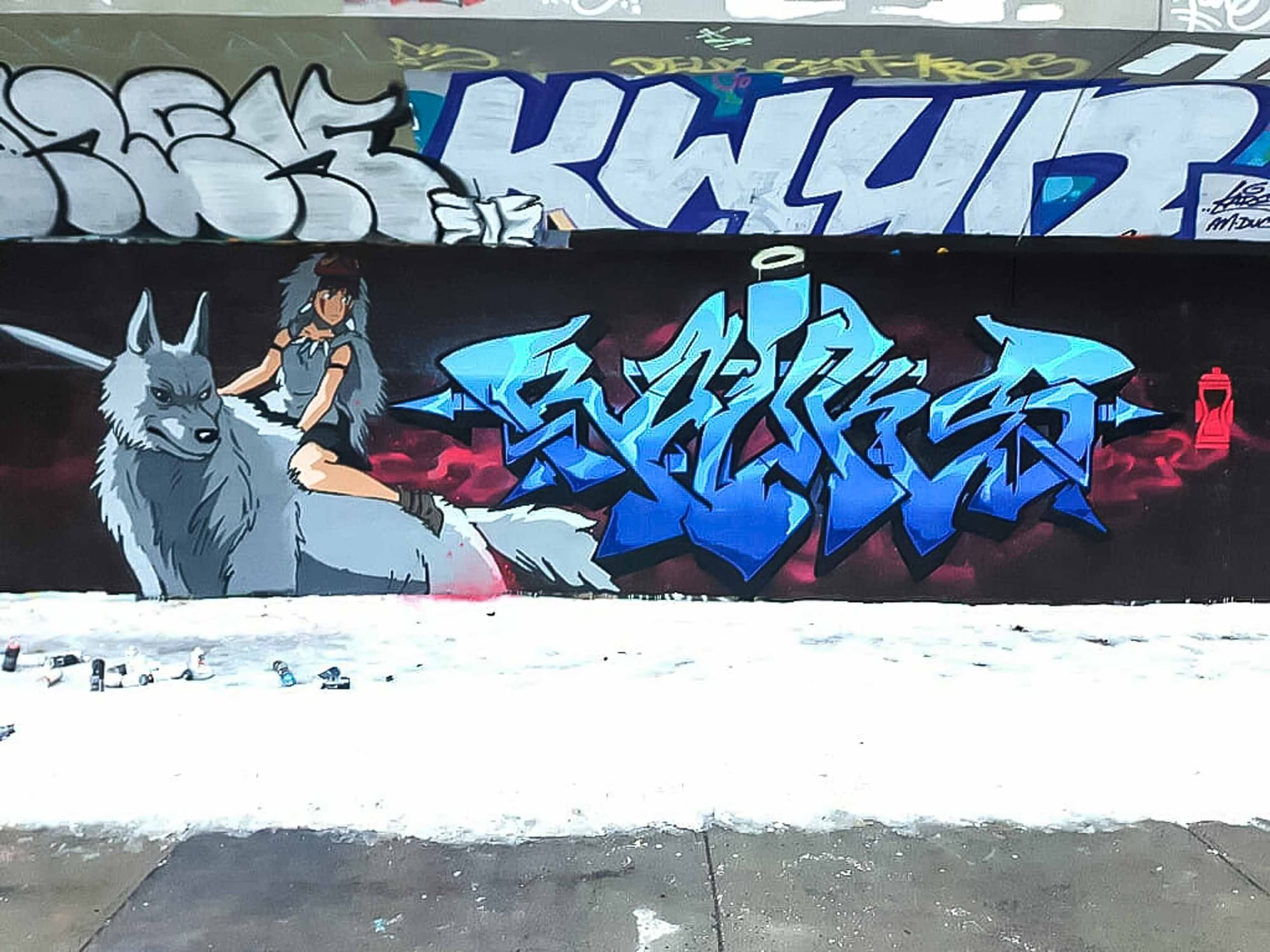 Le projet qu'il vient d'achever au centre-ville a été entièrement réalisé avec des canettes de peinture en aérosol. C'est aussi une oeuvre très différente de beaucoup de ses réalisations.