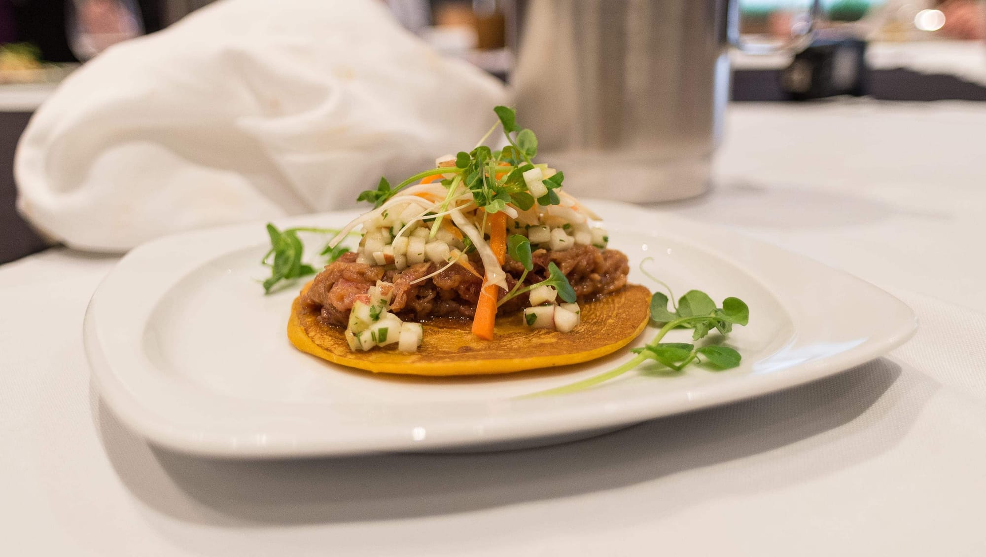 Les participants à la soirée-bénéfice de la Fondation du cégep, qui s'appelle Accordons à chaque mets son vin, le 20 avril, auront la chance de déguster ce plat, nommé Tacos revisité, lors du deuxième service.