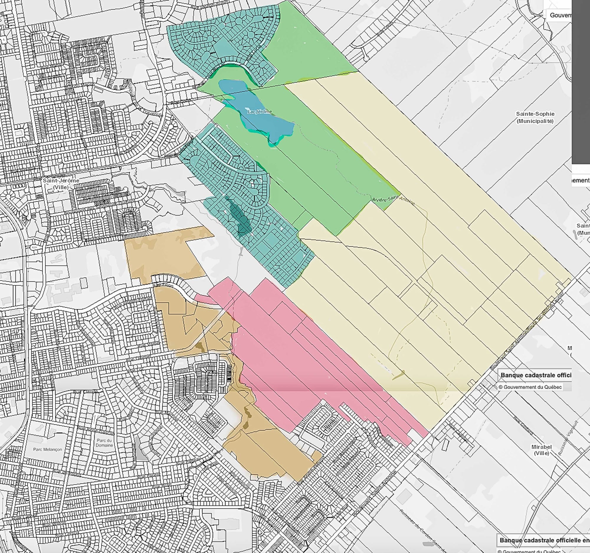 Quant au projet d'écoquartier présentement en discussion, sa superficie est de 8 millions de pieds carrés. Ce secteur a été identifié comme « Écoquartier Sud » par la Ville de Saint-Jérôme dans un plan transmis à TopoLocal.