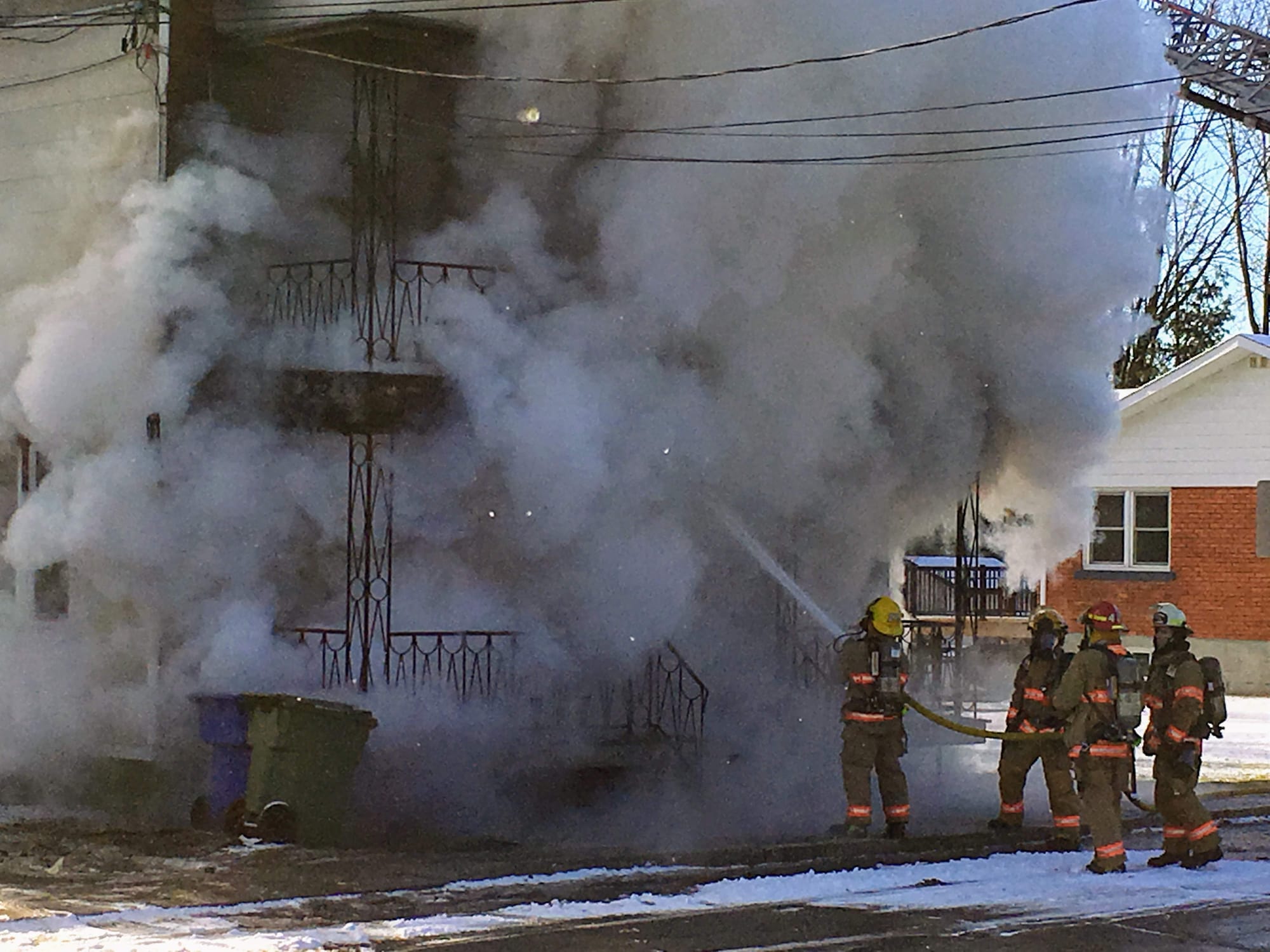 Un incendie qui a démarré à l'extérieur a endommagé un immeuble à logements de la rue Scott, à Saint-Jérôme le matin du lundi 27 novembre.