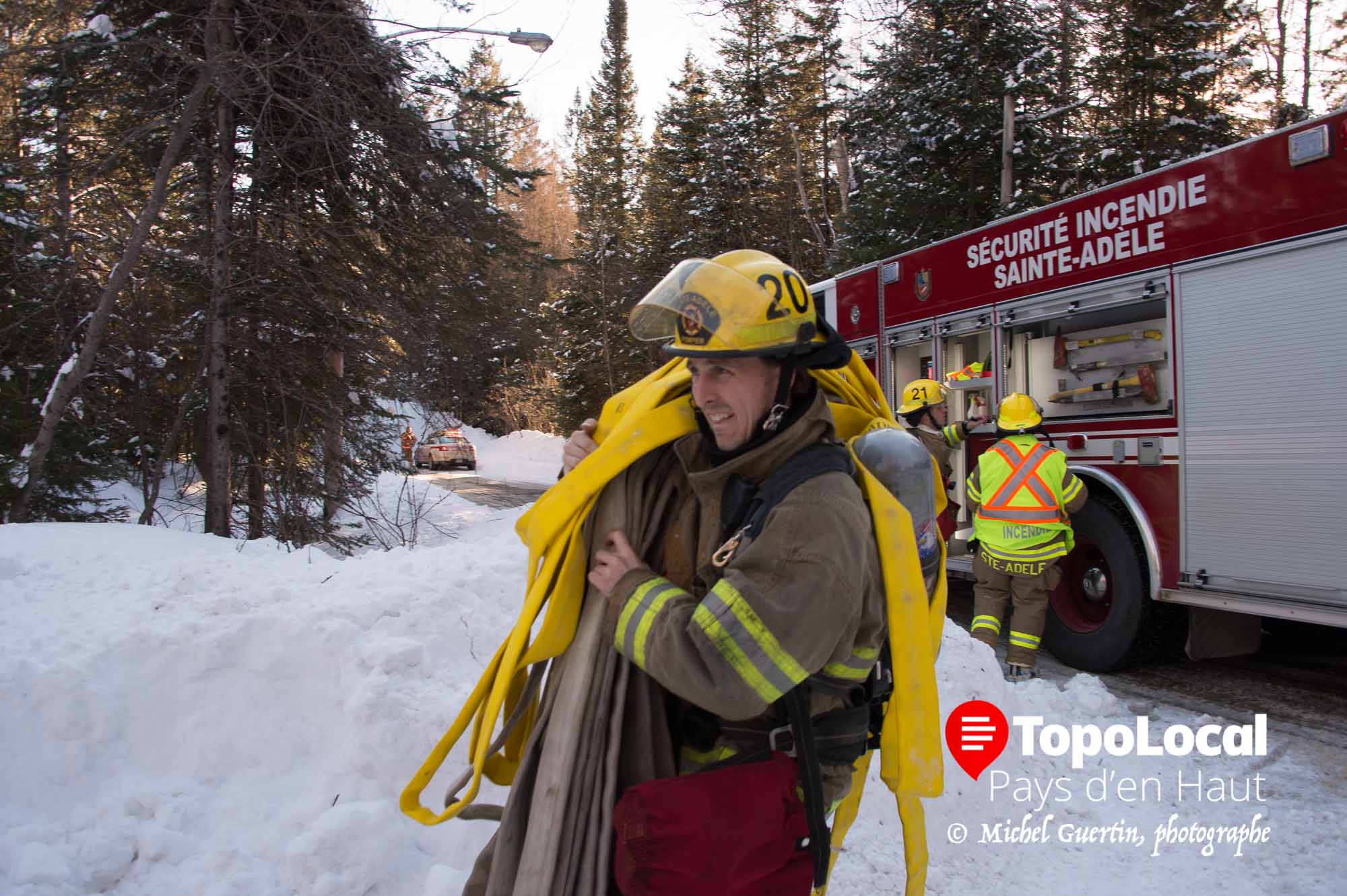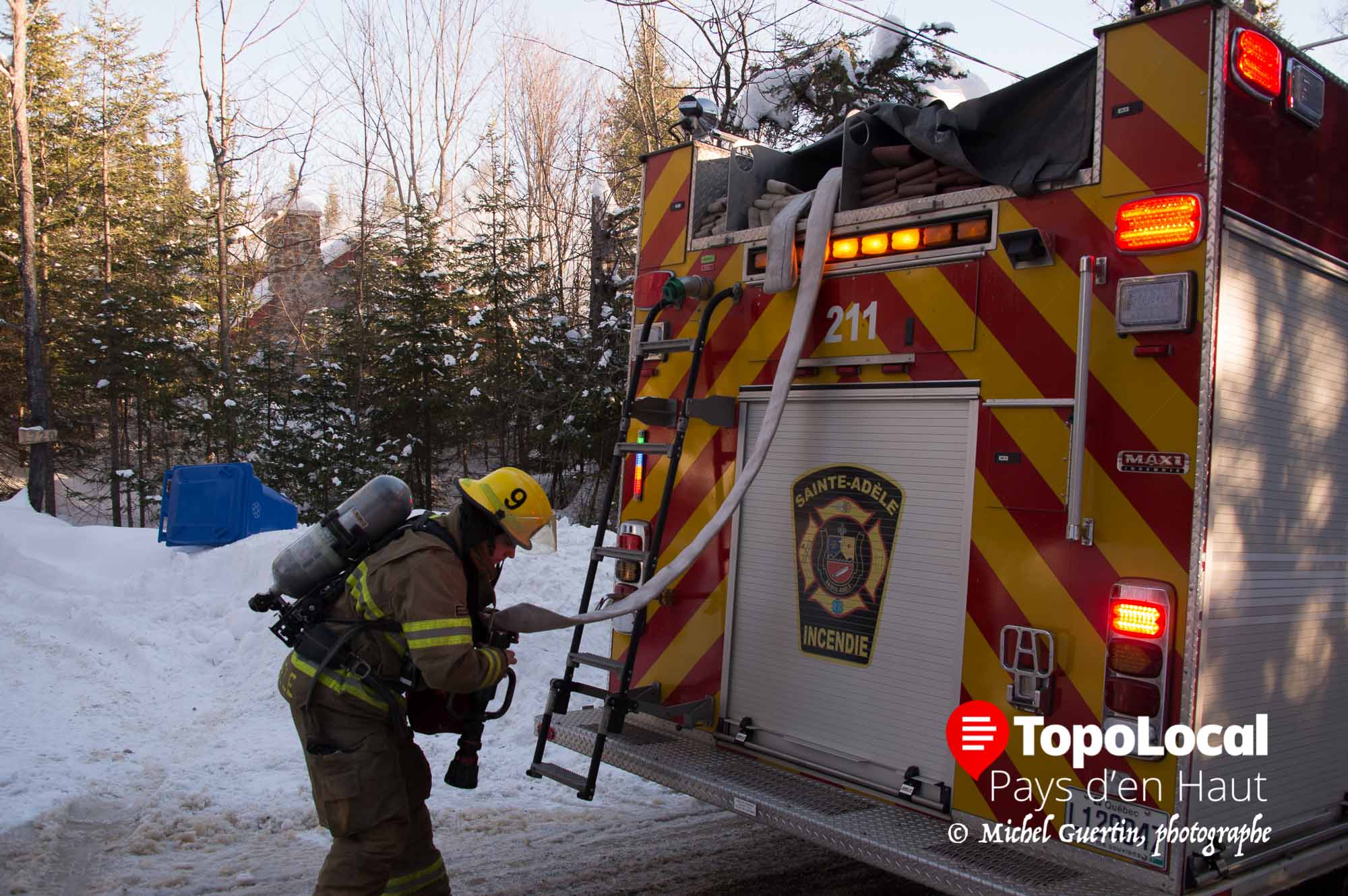 Il y a un incendie dans une maison au bout du chemin des Chanterelles, à Sainte-Adèle, vendredi après-midi.
