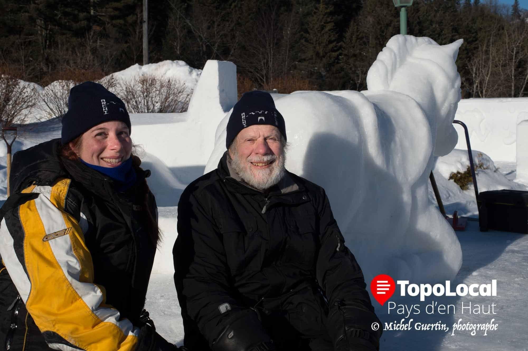 Toujours à Sainte-Marguerite, Gilles Lauzé et sa fille Sarah travaillaient à terminer les sculptures de glace à l'entrée du lac.