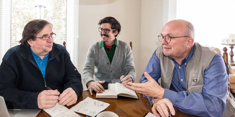 Sur la photo qui date de l'an dernier, je suis avec Charles et Louis-Xavier Michaud, alors qu'on annonçait l'arrivée de TopoLocal dans les Pays-d'en-Haut et les Laurentides.