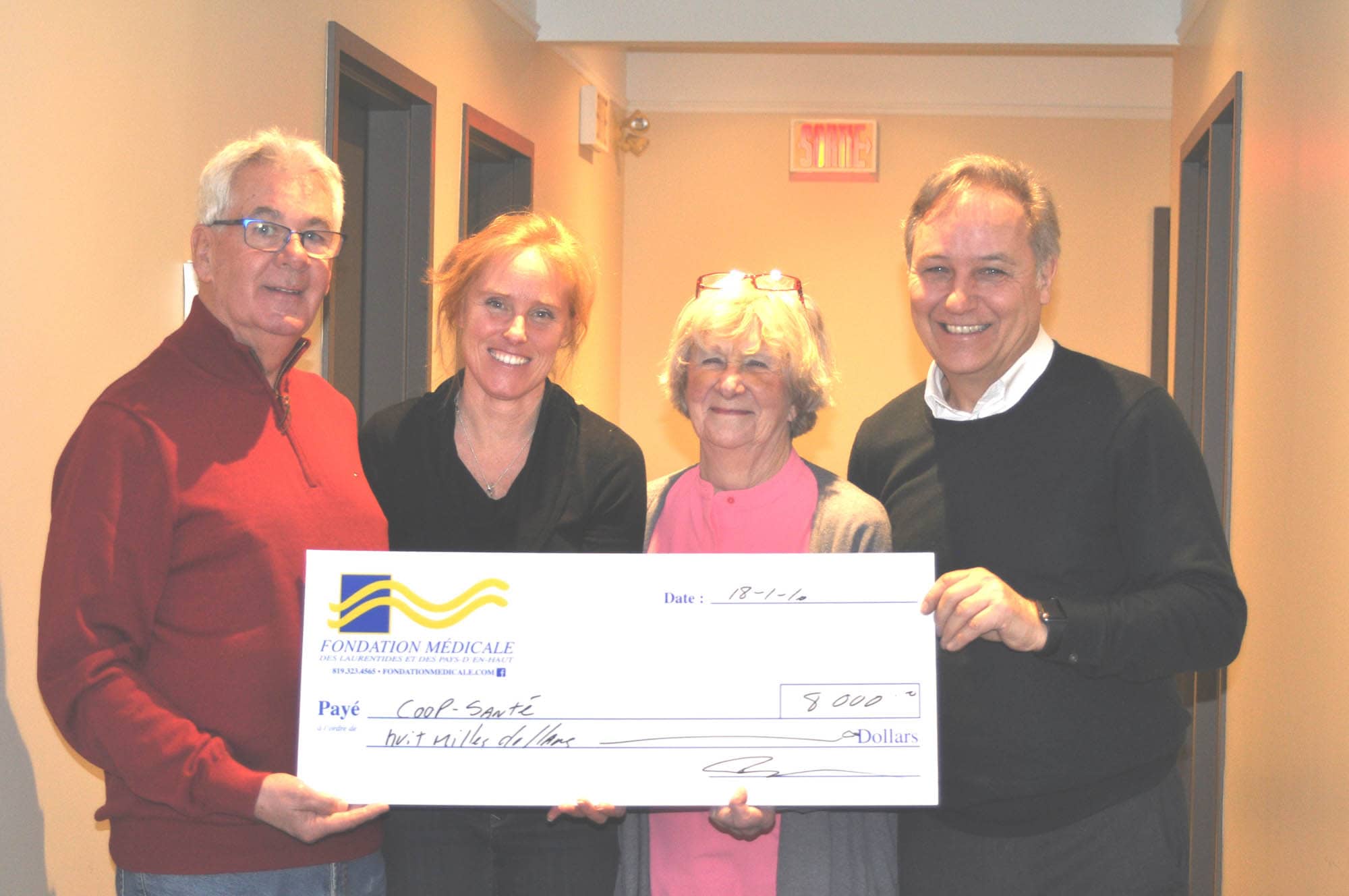 Un don important pour la Coop santé de Saint-Adolphe-d'Howard qui a reçu 8000$ de la Fondation médicale des Laurentides et des Pays-d'en-Haut.