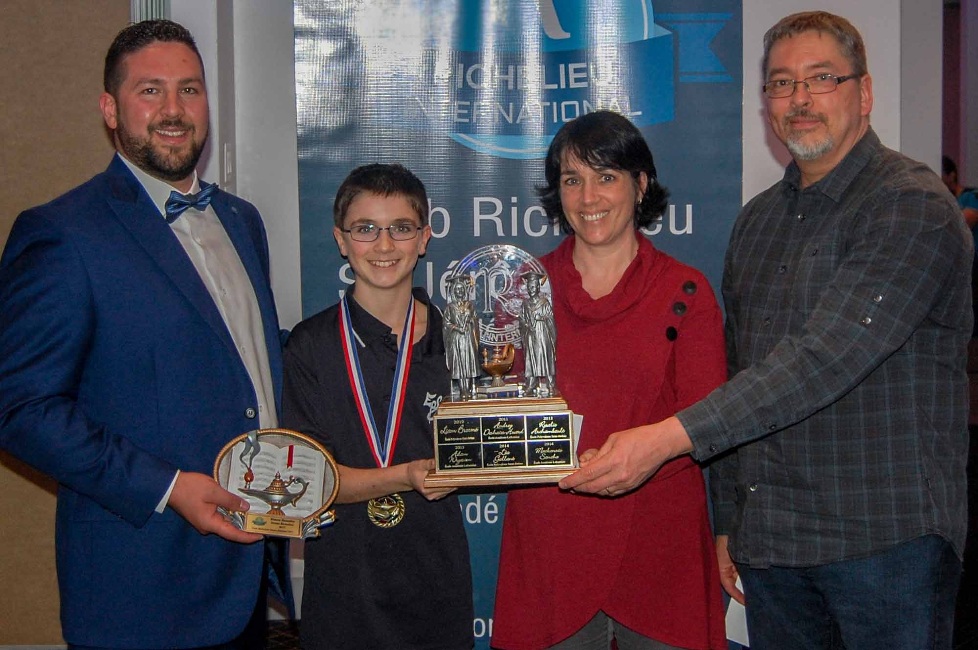 Cette fois, Simon est accompagné de sa mère, du président et de Louis Cardinal qui a récupéré la première bourse de Simon et le gros trophée pour la bibliothèque de l'École polyvalente de Saint-Jérôme.