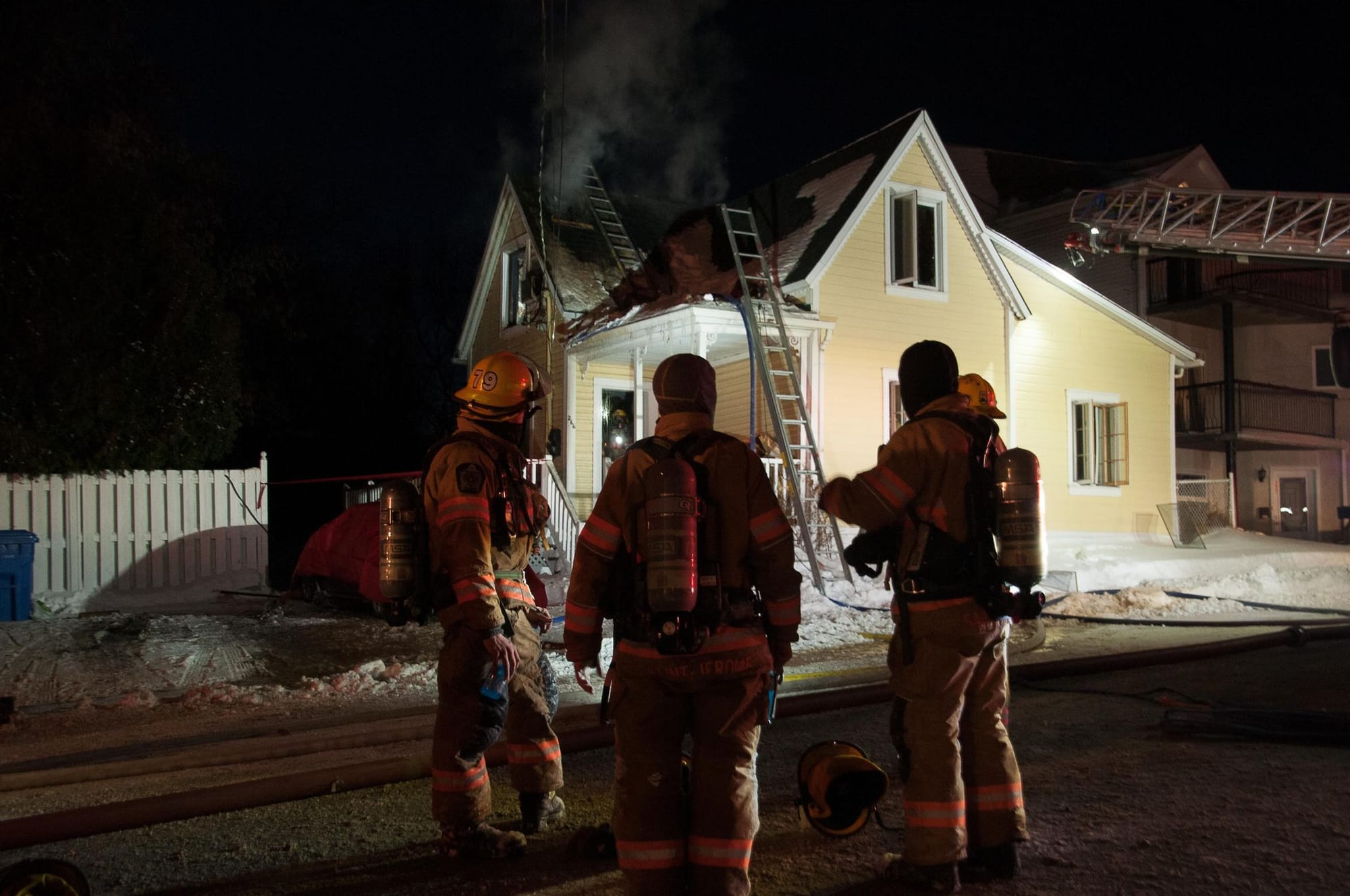Les pompiers ont passé plusieurs heures sur les lieux pour venir à bout des flammes. D'après les informations publiées au cours de la nuit avec une photo inexacte sur le Journal de Montréal, la maison était vide au moment de l'incendie mais les dommages à la structure pourraient être importants.
