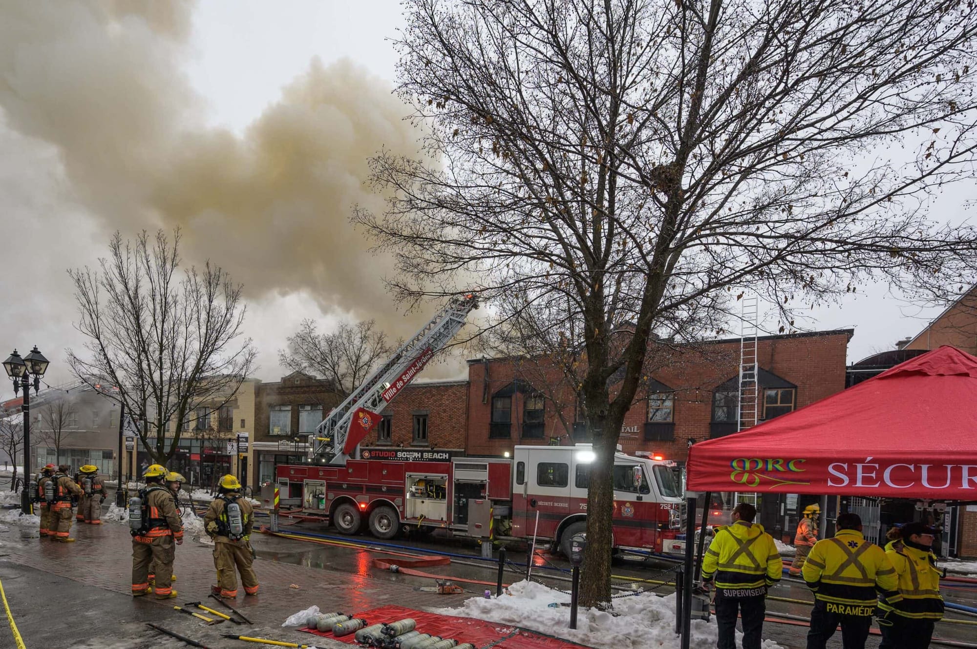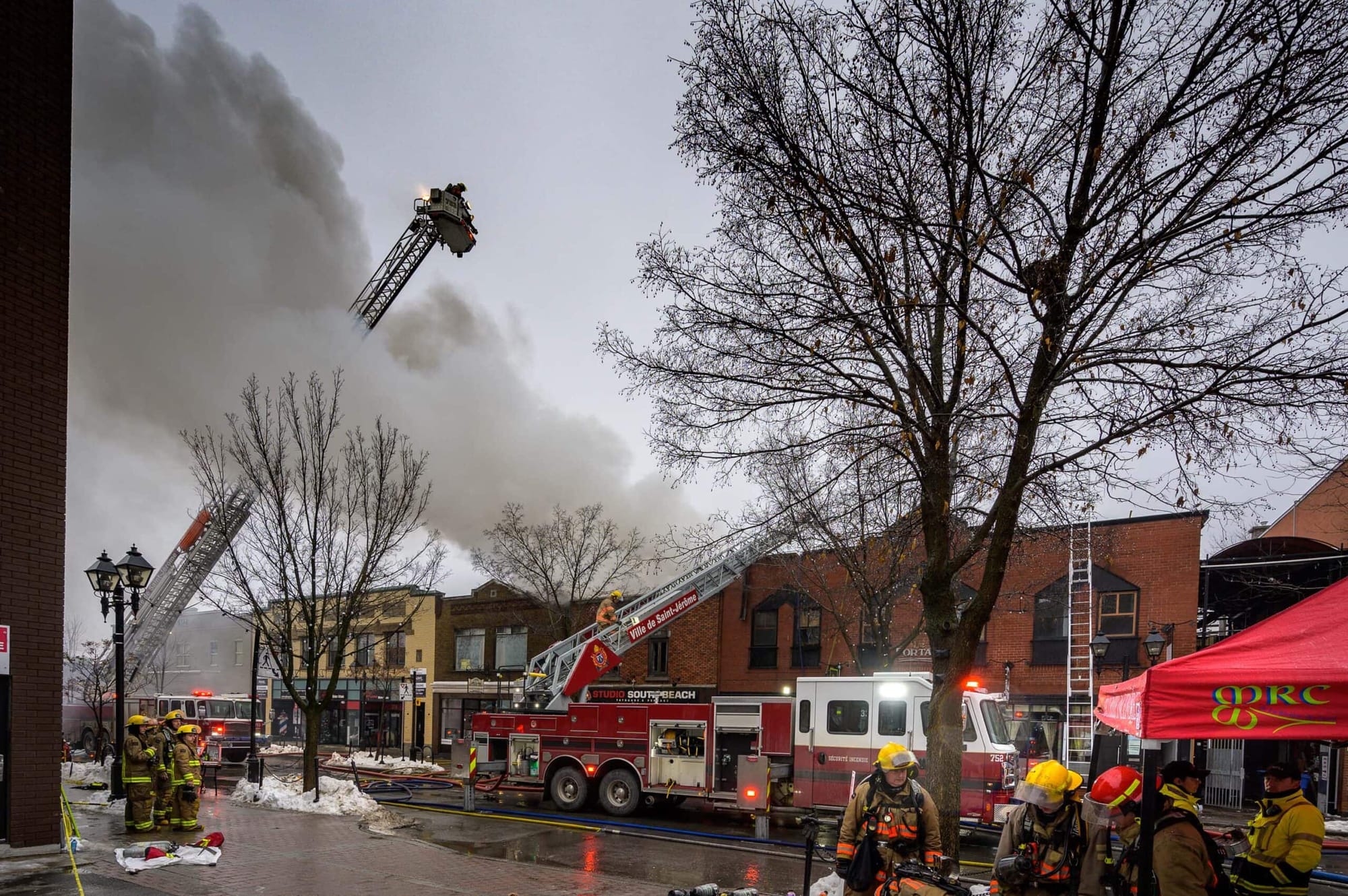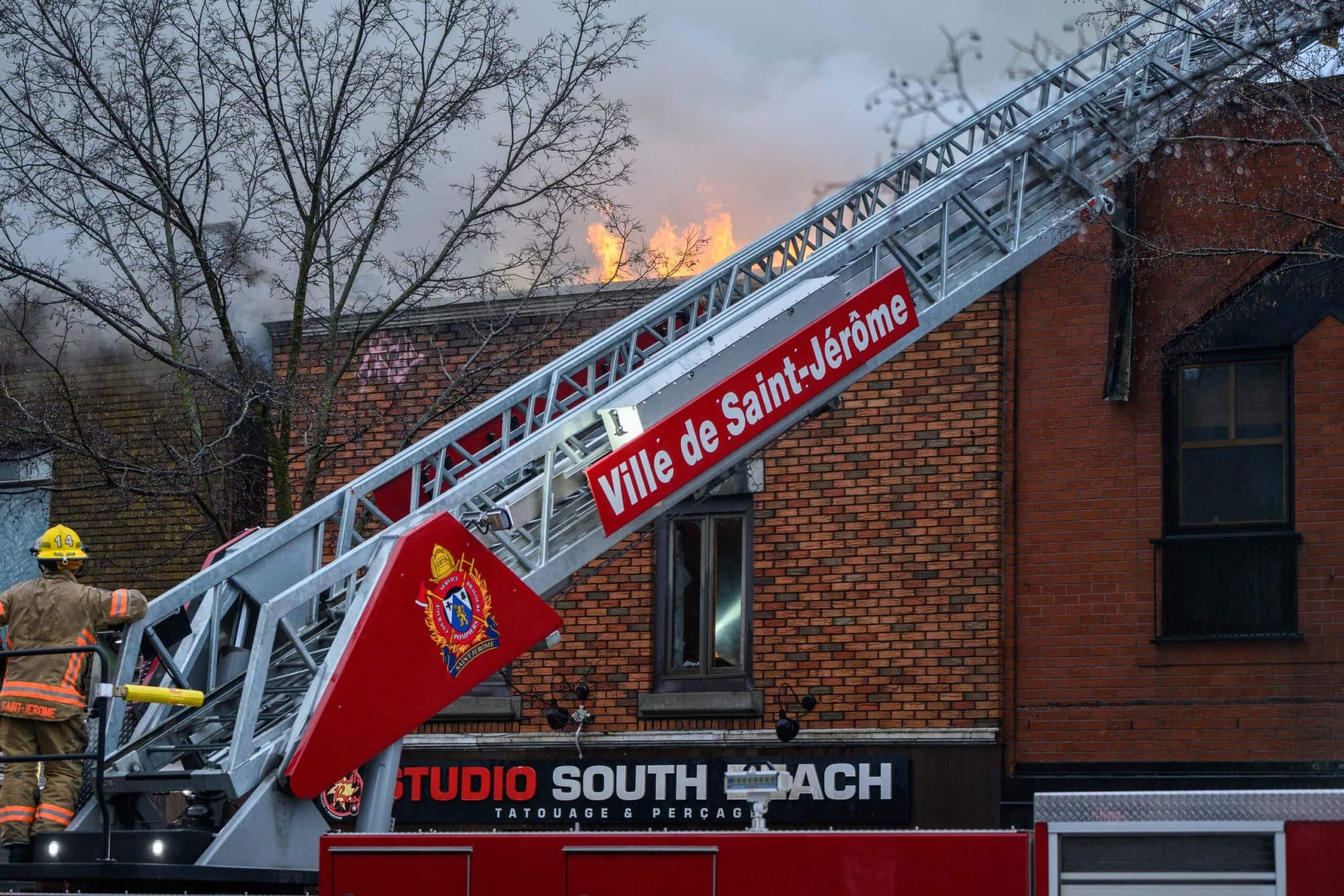 Un incendie s'est déclaré tôt dimanche matin au centre-ville de Saint-Jérôme. Le feu a pris naissance dans un édifice qui abritait le studio de tatouage South Beach.