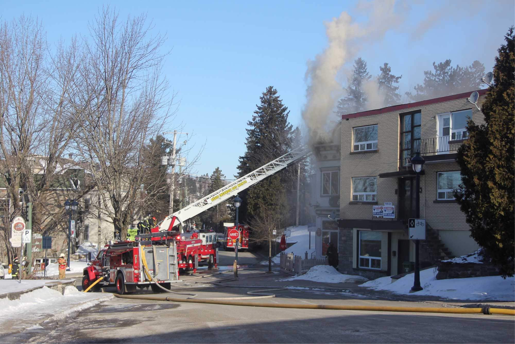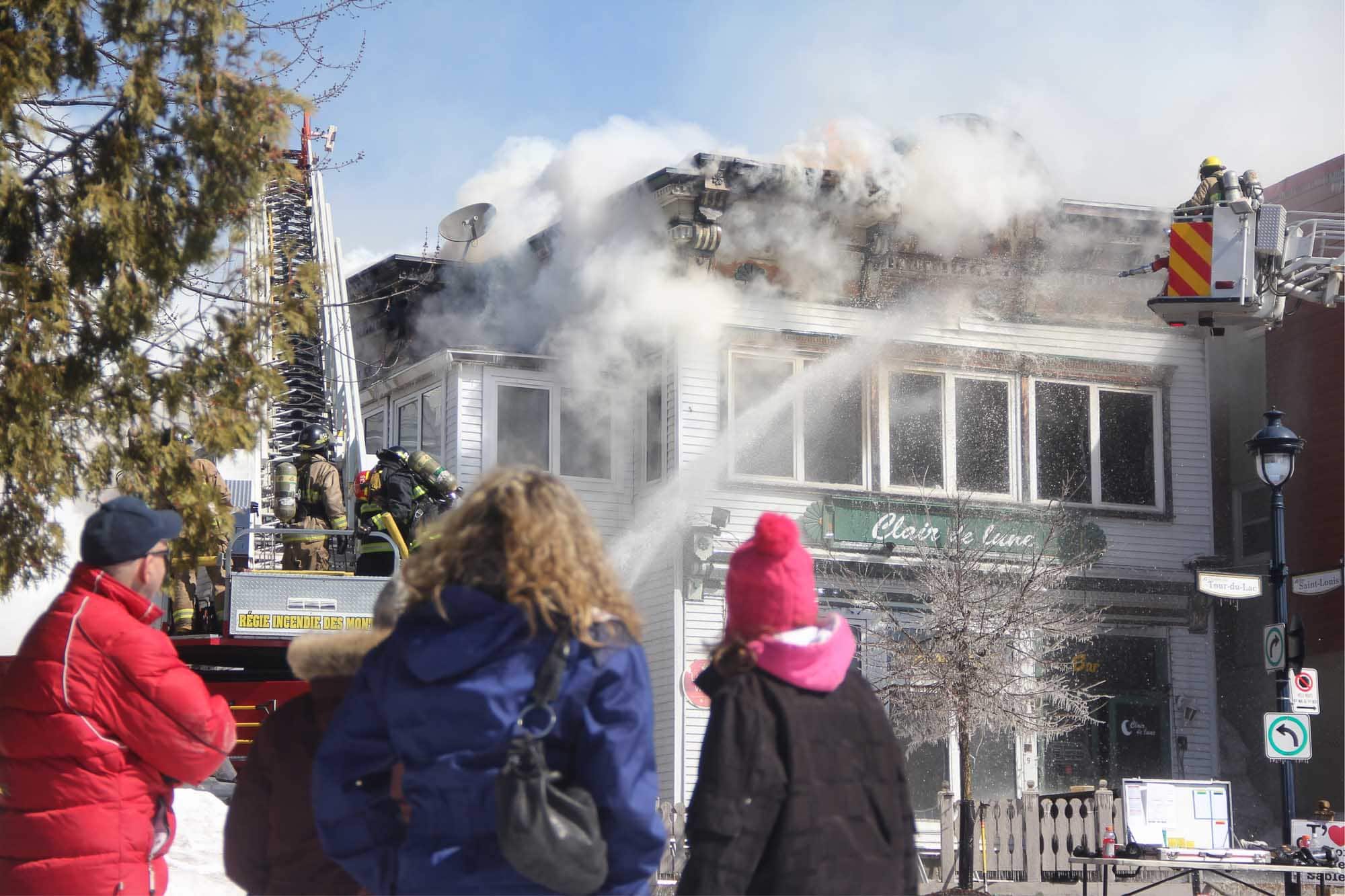 Un incendie couvait depuis ce matin au bar Clair de lune, au centre-ville de Sainte-Agathe-des-Monts, sur le chemin Tour-du-Lac.