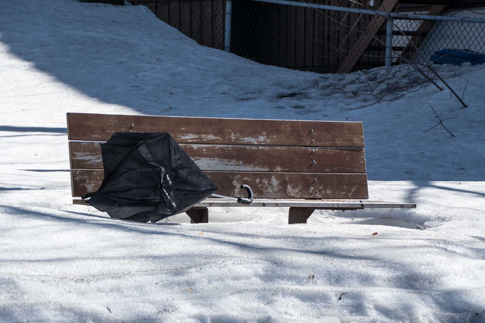 Le parapluie sur le banc de parc
