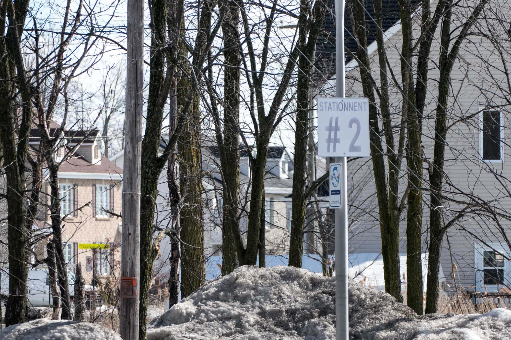 Les congères s'amenuisent et on sort les yeux de nos cagoules. Une lecture rigoureuse de cette image nous a permis de constater qu'il manque un me à ce stationnement #2, sur la 36e avenue devant l'École secondaire Cap-Jeunesse.