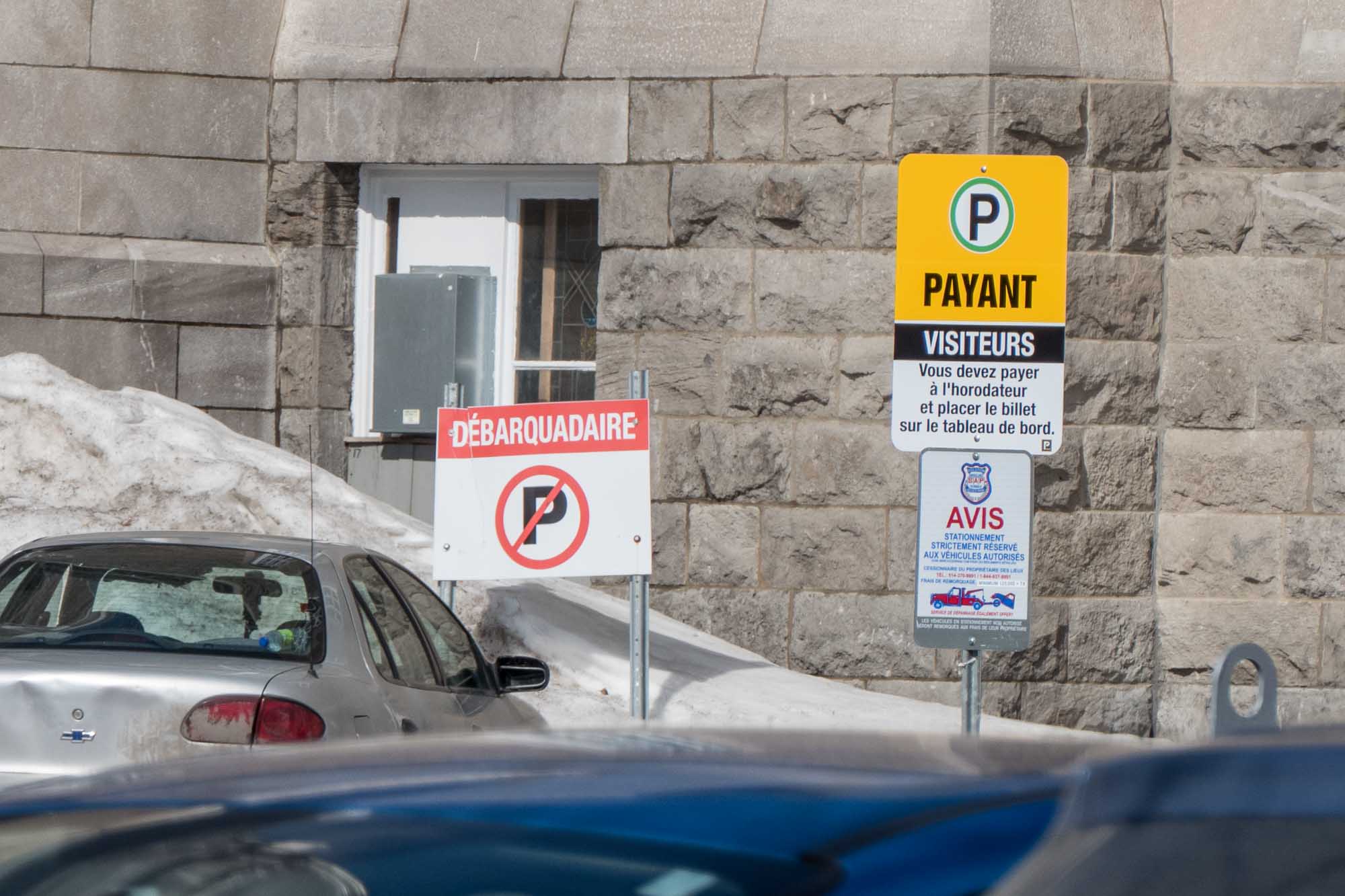 Parlant de stationnement, celui de la Cathédrale de Saint-Jérôme est devenu payant au cours de l'année. Peut-être cela sera-t-il l'occasion de remplacer cette affiche de stationnement interdit?