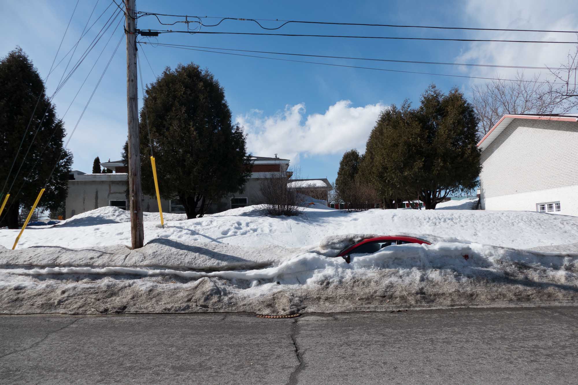 Si on accorde une forme de vie à son véhicule automobile, on pourrait donc parler d'une hibernation pour cette voiture qui a visiblement trouvé refuge sur la rue Jeanneau à Lafontaine, avant que la neige ne tombe.