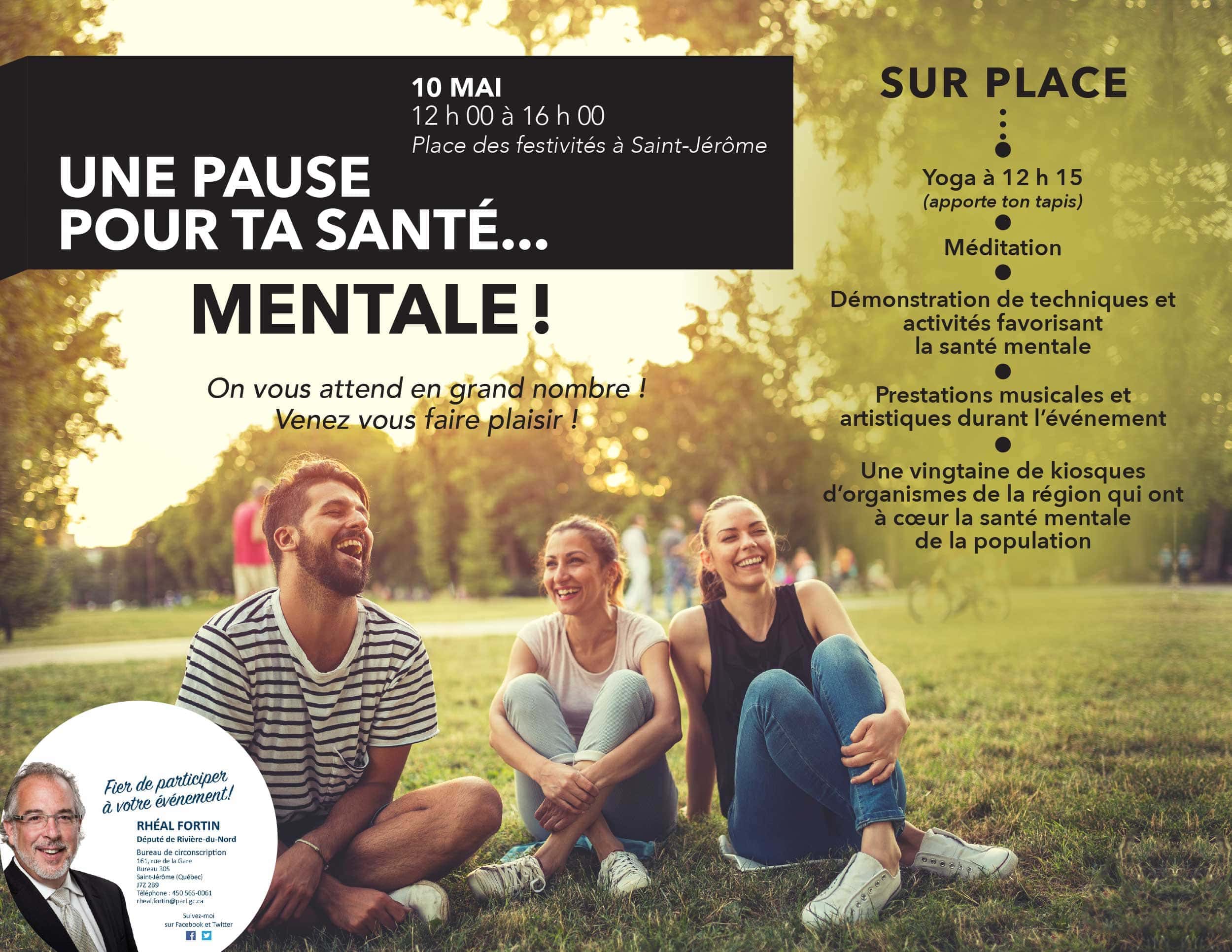 Et si vous preniez quelques instants pour mesurer l'état de votre santé mentale? C'est ce qui vous sera proposé ce jeudi après-midi 10 mai à la Place des festivités au centre-ville de Saint-Jérôme.