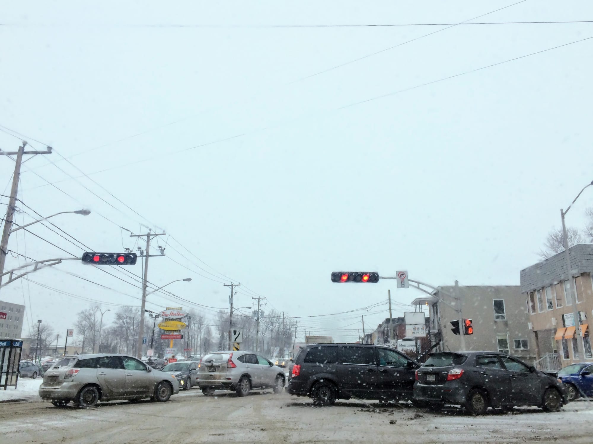 Les conditions routières de la matinée étaient difficiles, alors qu'une chute soutenue de neige s'est prolongée jusqu'au midi.
