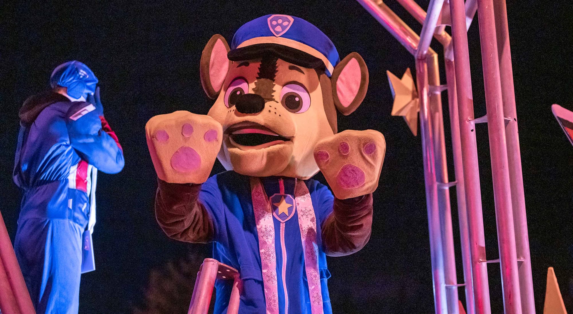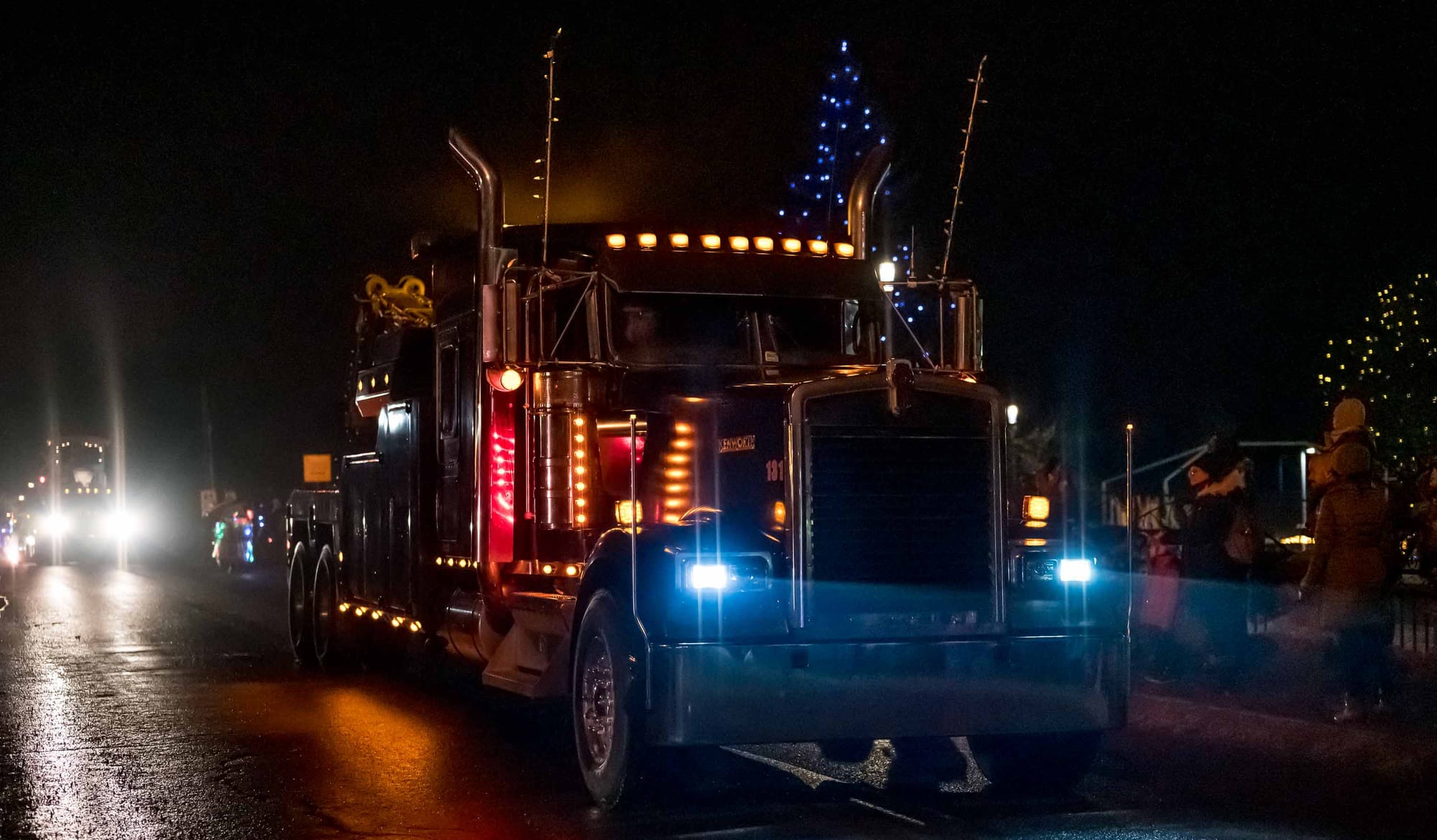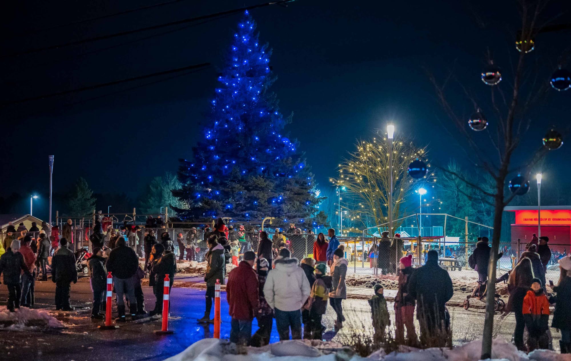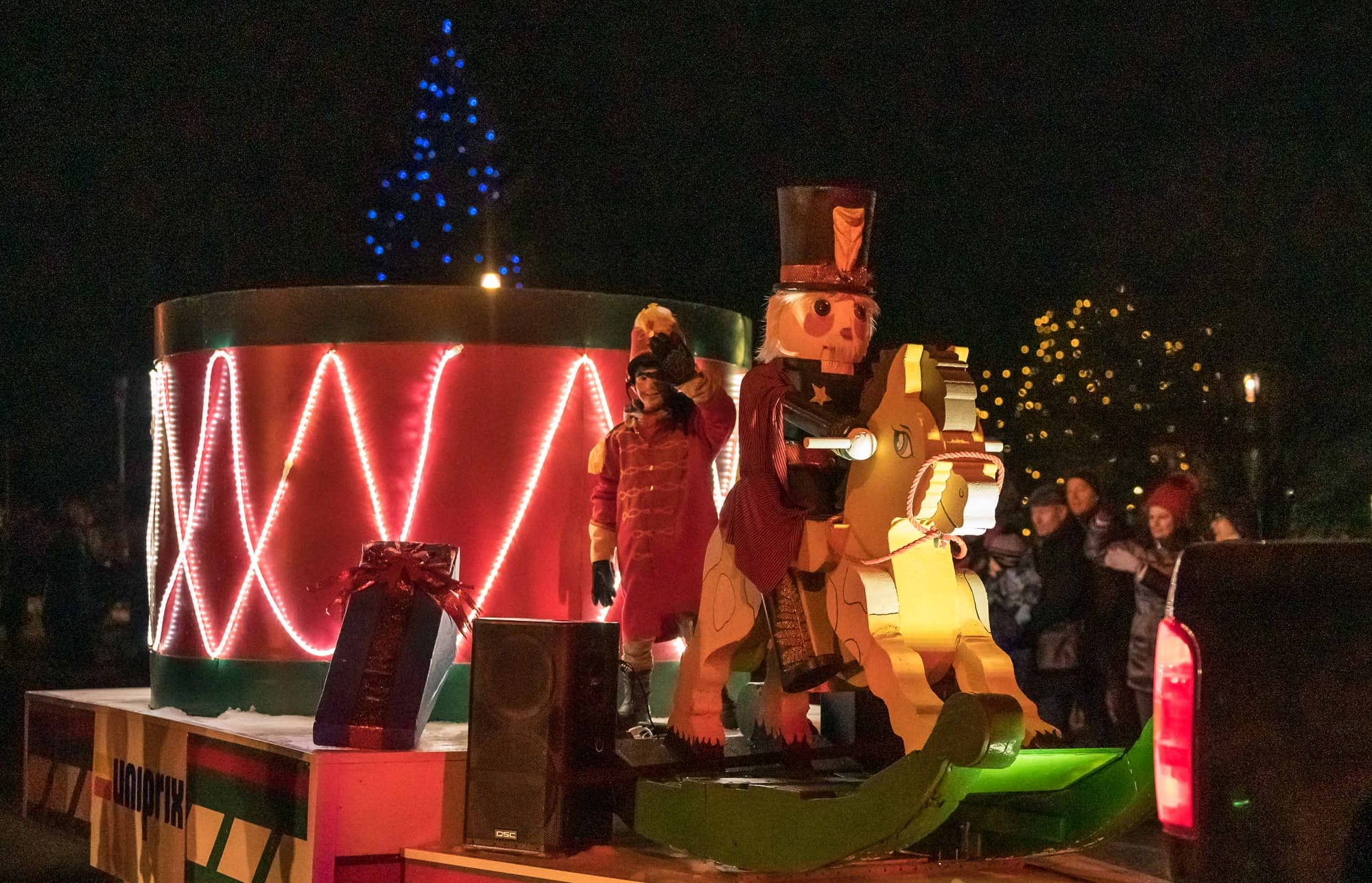 En fait, le coeur du village a été bloqué à toute circulation de 16h30 à 17h30, alors que la rue s'est remplie de musique, de lumières, personnages, de chars allégoriques, et de très nombreux spectateurs. Le beau temps et l'ambiance d'un défilé tenu dans l'obscurité du soleil couhant ont contribué à gonfler l'assistance, remplissant les stationnements et les navettes qui avaient été prévus pour l'occasion.