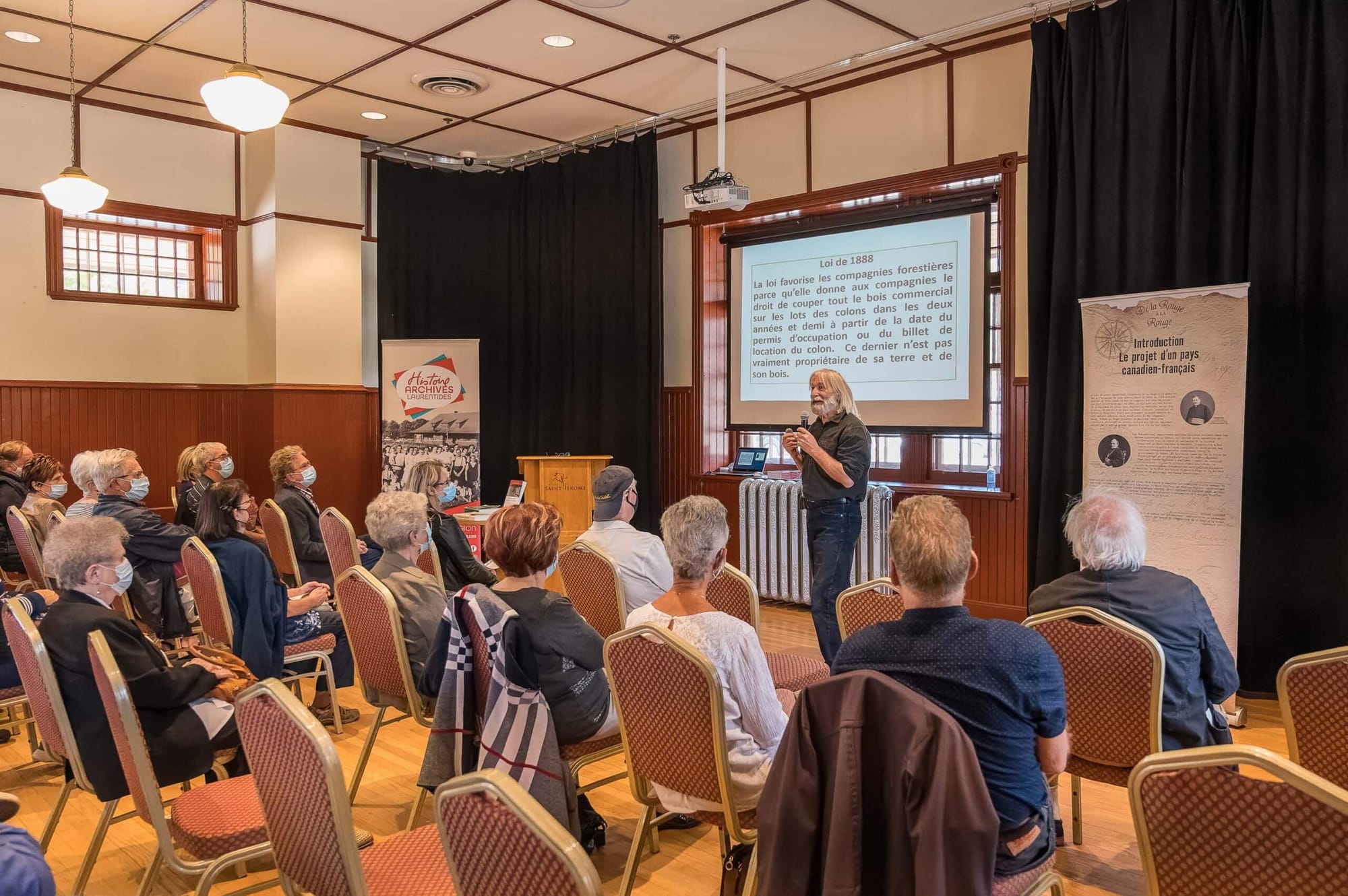 Il a donné une belle conférence, très vivante, sur le curé Labelle à la Vieille-Gare de Saint-Jérôme, le dimanche 27 septembre, organisée par Histoire et archives Laurentides, nouveau nom de la Société d'histoire de la Rivière-du-Nord. Un bon communicateur.