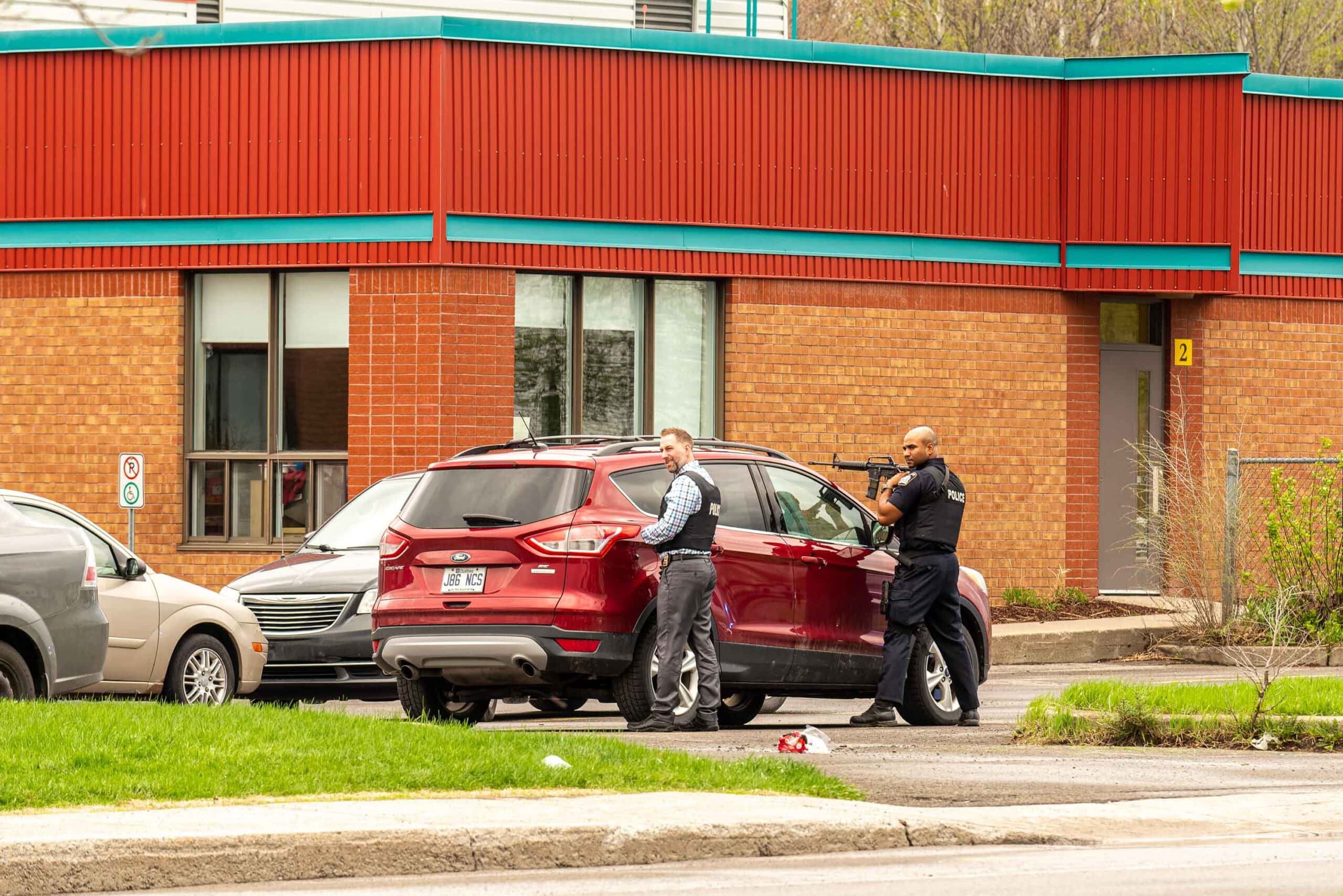 C'est vers 8 h 30 qu'un appel au 911 informait les autorités qu’un homme suspect aurait été vu dans un boisé aux abords des deux écoles. Par mesure de prévention, les deux écoles ont déclenché un « Code noir, » code de confinement barricadé afin que tous les occupants des deux écoles demeurent à l’intérieur. Une vingtaine de policiers et enquêteurs ont été dépêchés sur place. Ils ont érigé un large périmètre de sécurité et ensuite fait un ratissage minutieux du boisé et du secteur environnant.