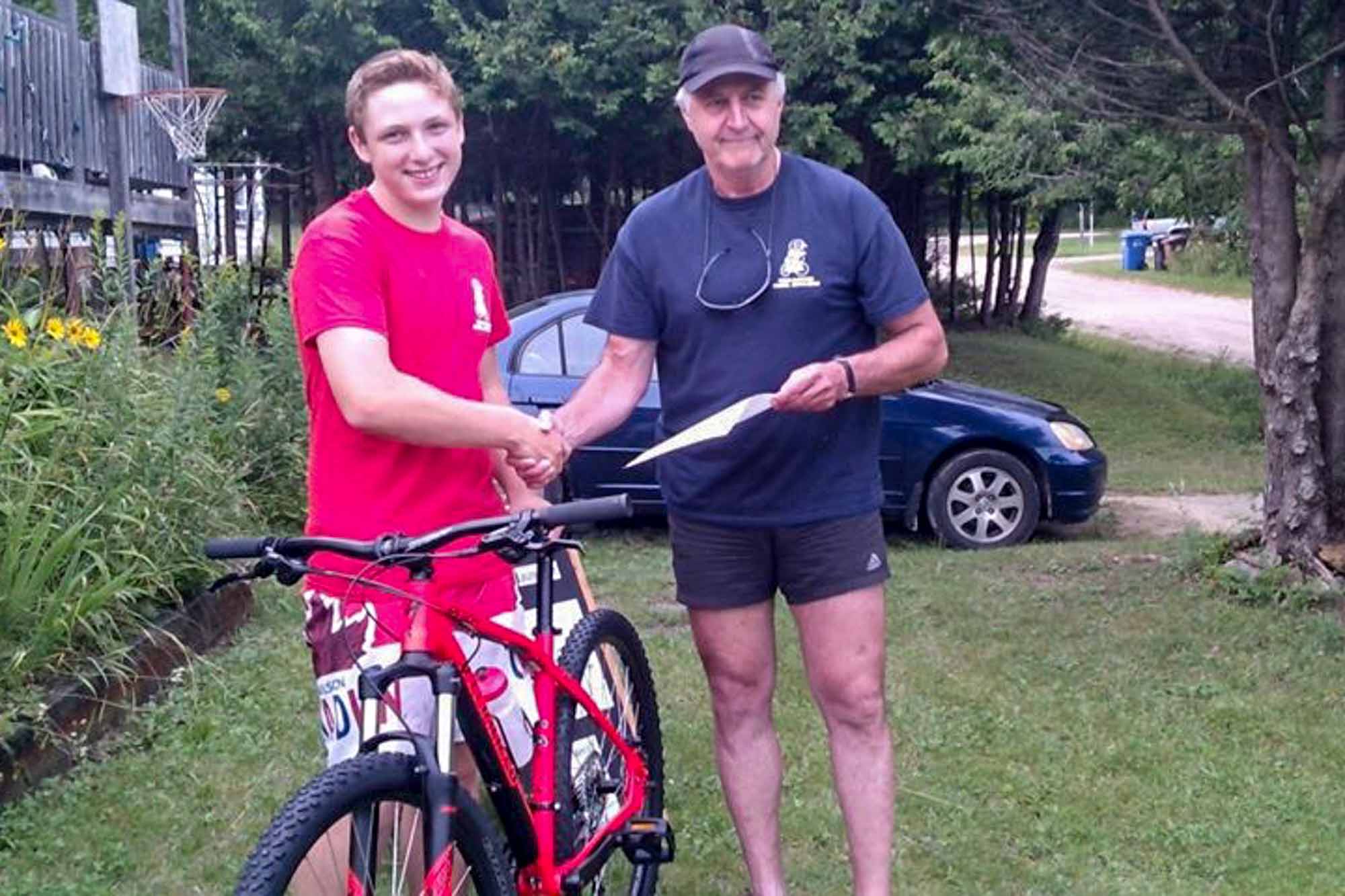 Dernièrement, Samuel a reçu un vélo, un cadeau élaboré par Tria-G-Nord Laurentides avec la complicité d'Espresso Sports Saint-Sauveur.