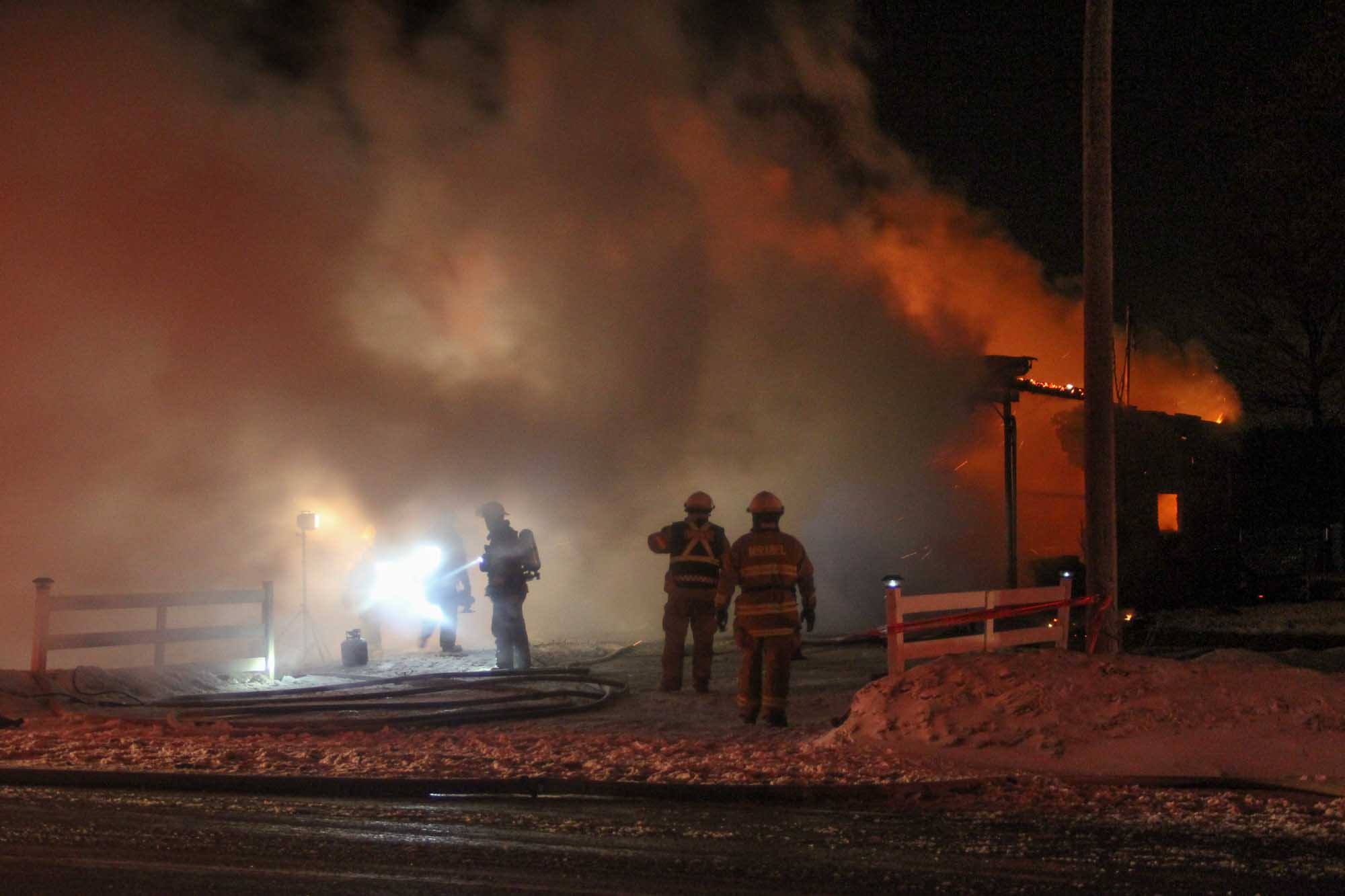 La journée de verglas et de neige s'est terminée par un incendie pour les résidents d'une maison de la route Arthur-Sauvé, à Mirabel.