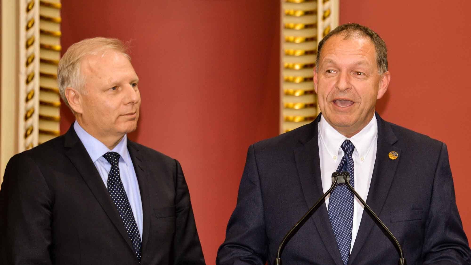 Marc Bourcier a prononcé une courte allocution en compagnie du chef de l’opposition officielle, Jean-François Lisée.