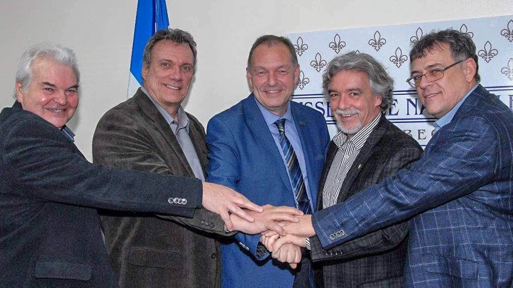 Marc Bourcier est au centre sur la photo, entouré de Richard Lalonde et Jacques Laplante qui feront partie du personnel de circonscription, ainsi que de Michel Métivier, son principal attaché politique, ainsi que Michel Gagnon, également membre du personnel de comté.