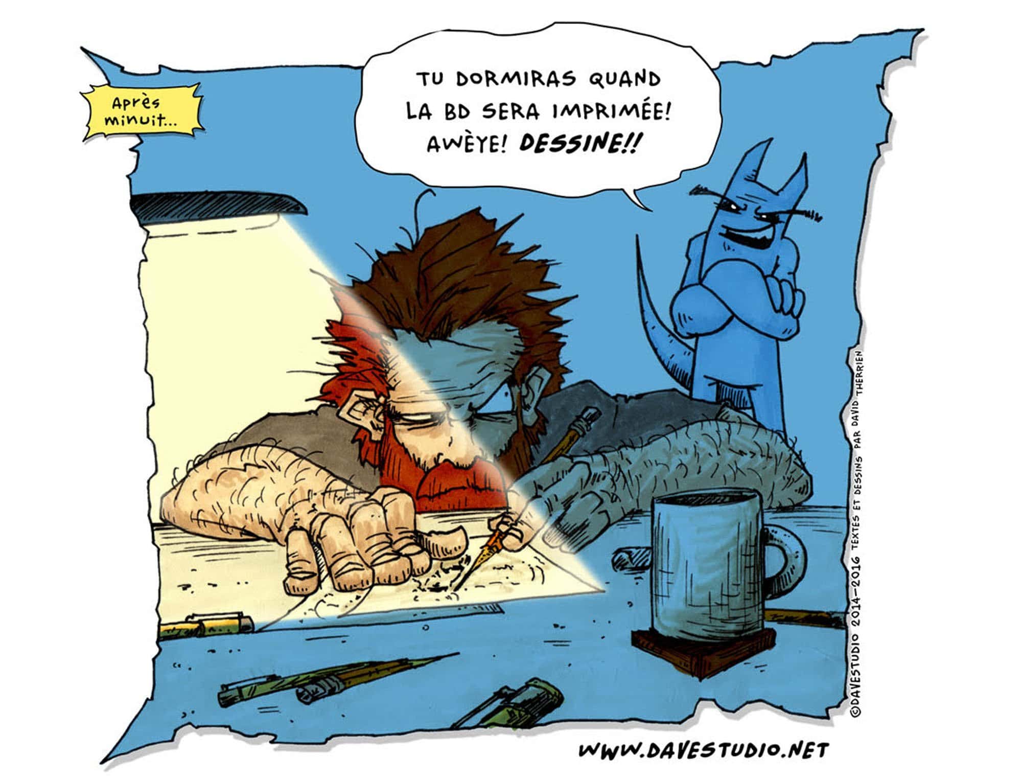 Deux projets de front par année, dans le monde de la BD au Québec, ce serait suffisant comme emploi à temps plein pour une poignée de noms très connus, vedettes du monde assez restreint de la bande dessinée québécoise, mais David Therrien n'en est pas là.