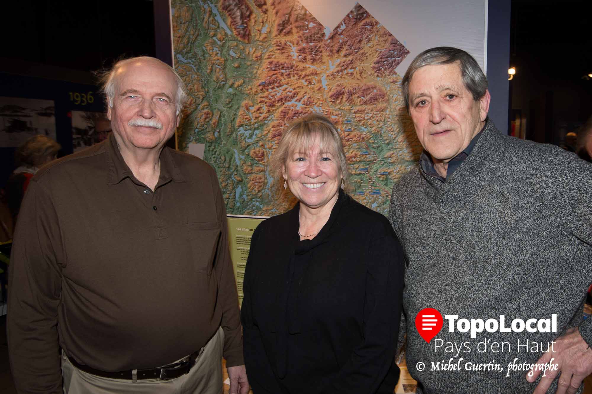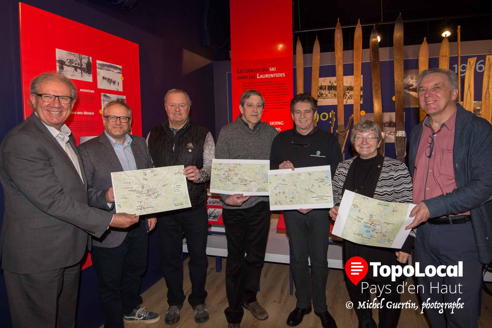 Jacques Gariépy, maire de Saint-Sauveur, Pierre Gauvin et Gilles Dazé, du Musée du ski, Pierre Dumas, ingénieur et auteur, Gilles Boucher, préfet suppléant de la MRC des Pays-d'en-Haut et maire de Sainte-Marguerite-du-Lac-Masson, la mairesse de Val-David Nicole Davidson et André Genest, maire de Wentworth-Nord, étaient présents pour le lancement de ce répertoire.