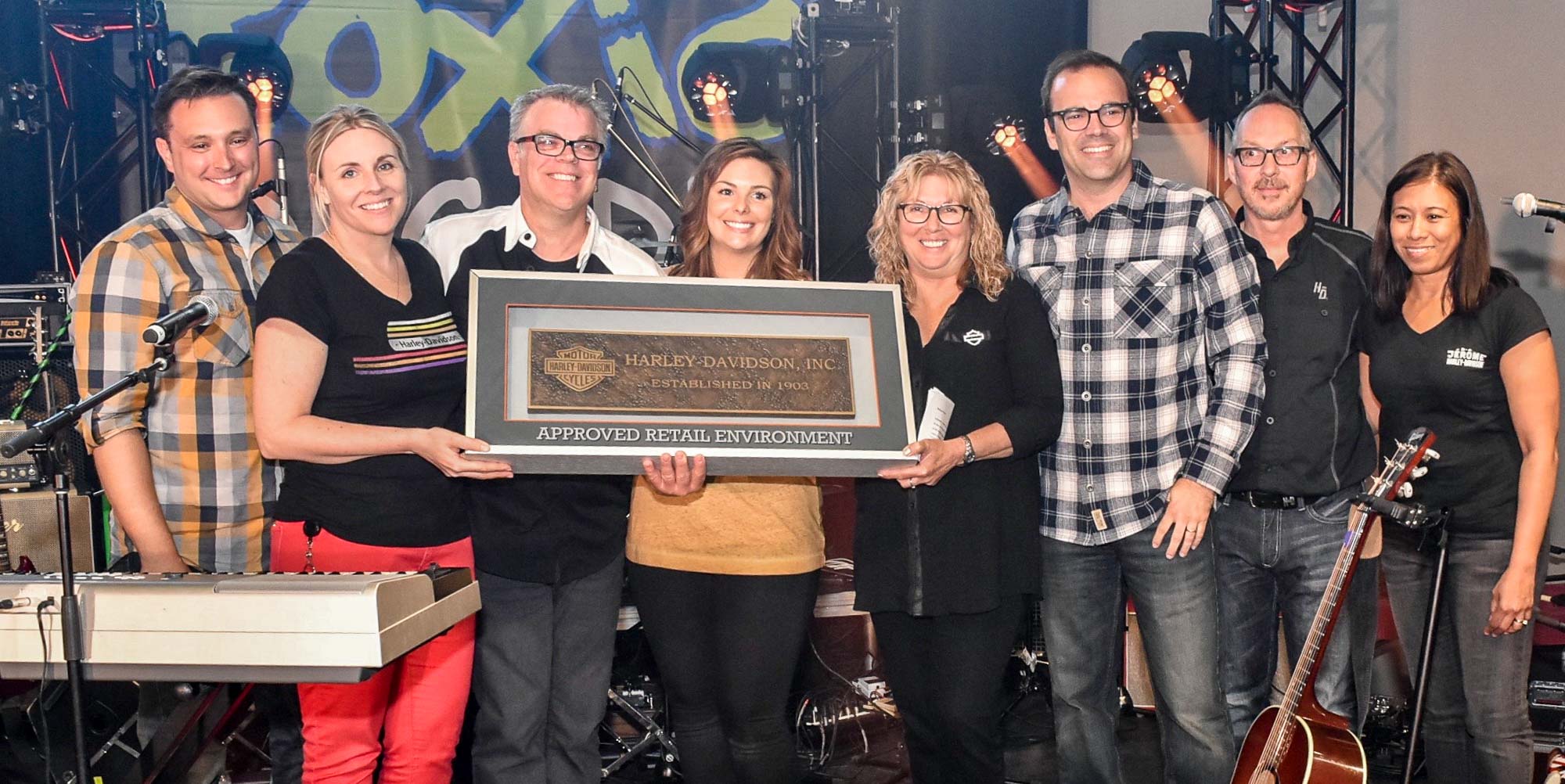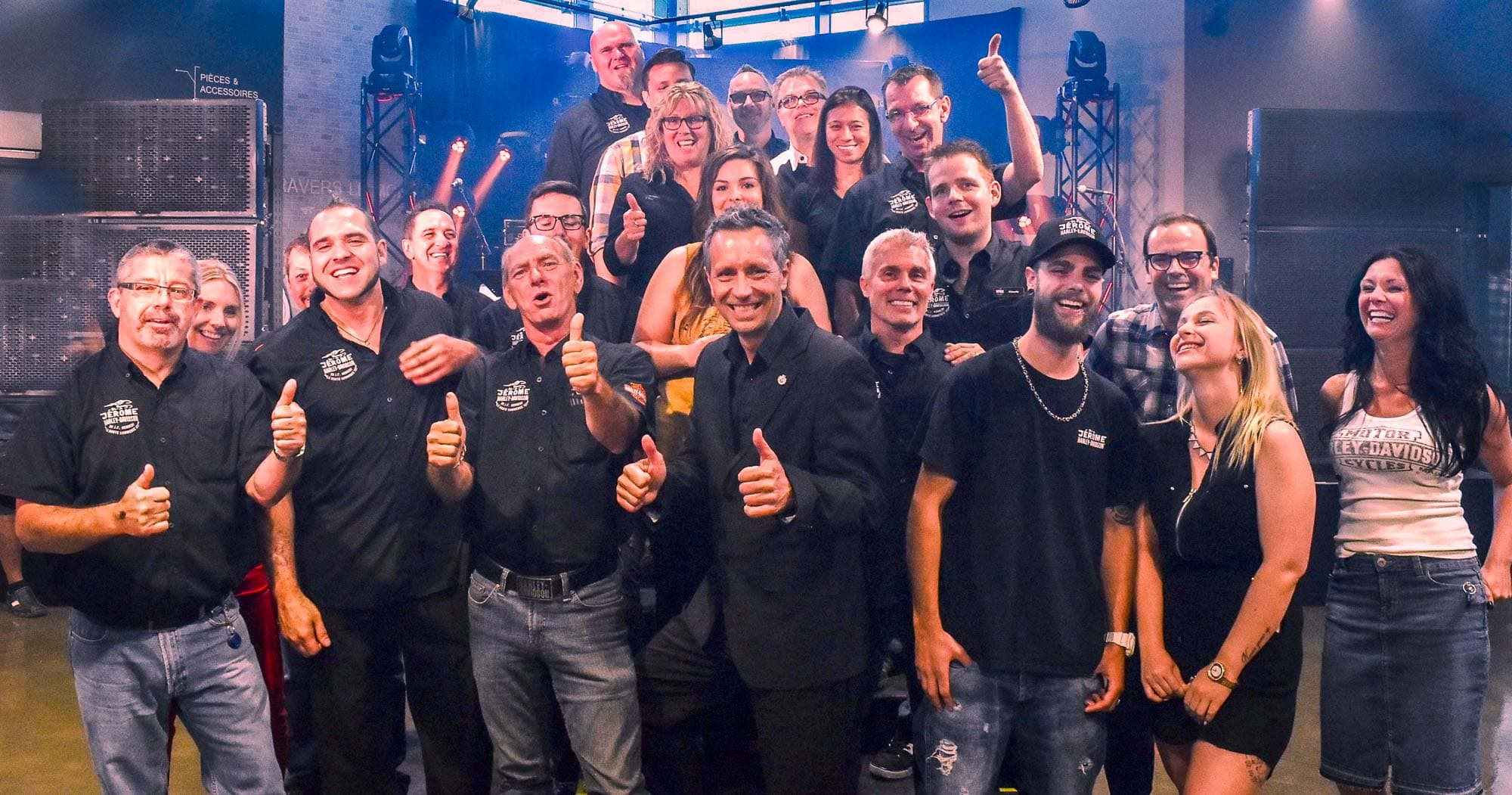 Marc Rousseau avec les copropriétaires de la concession Chantal Bussières, Doris Tremblay, Andréanne B.Gosselin, Marlène Bussières ainsi que Ignacio Inaki Isusi de Harley-Davidson Canada, Jean-Francois Phaneuf et Aileen Rioux.Le maire de Saint-Jérôme Stéphane Maher est venu souhaiter longue vie au nouveau concessionnaire Harley-Davidson, et il a tenu à la faire en compagnie de toute l'équipe.Le maire Stéphane Maher en pleine conversation avec Ignacio Inaki Isusi de Harley-Davidson Canada.Tout un «show» que la prestation musicale de Interstate 90.Une prestation de danse mémorable et énergique.De nombreux amateurs de Harley-Davidson ont répondu à l'invitation du concessionnaire de Saint-Jérôme, qui inaugurait ses installations le 9 juin.Doris Tremblay, l'un des quatre copropriétaires, en compagnie de son frère Gilles Tremblay.Alain Fortier de Mallette, en compagnie de joyeux invités, et de Nancy, du traiteur Maison Courtemanche.Même le stationnement en mettait plein la vue aux amateurs de motos...