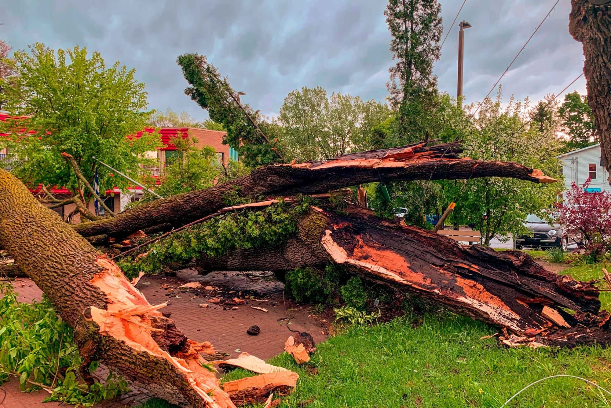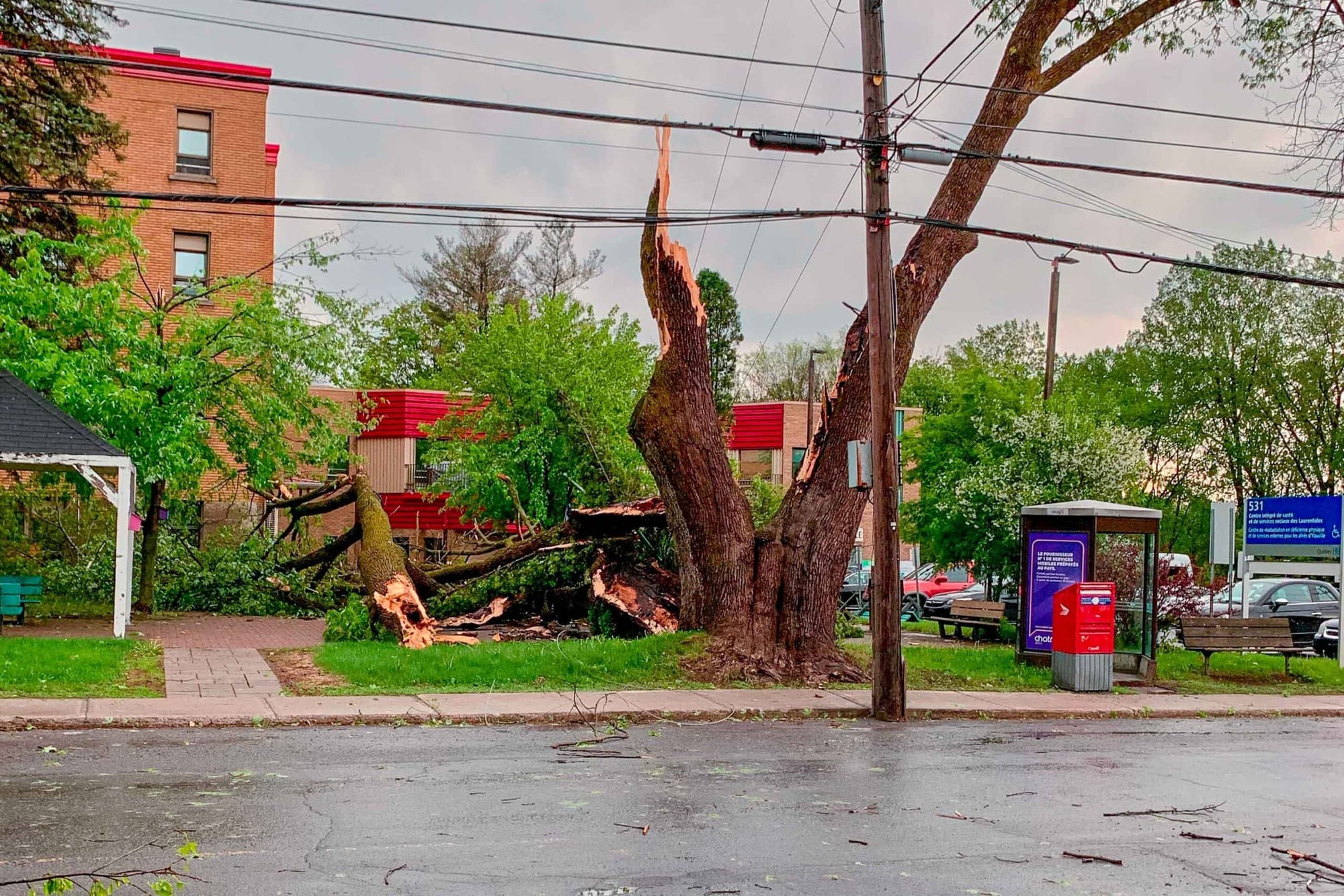 Les vents violents ont aussi déraciné quelques arbres et brisé des branches à divers endroits, notamment sur la rue Laviolette à Saint-Jérôme et sur la rue Parent.