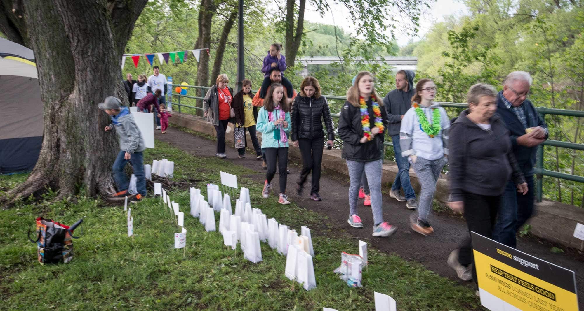 Dans la nuit du vendredi 26 mai, 308 personnes ont marché toute la nuit dans un sentier éclairé par 1273 luminaires. Ensemble, ces personnes ont amassé 126 935$ qui contribueront à la lutte contre le cancer.
