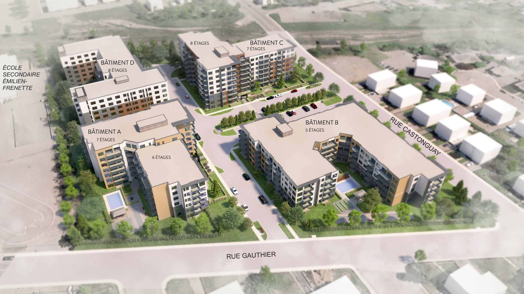 Le projet bordé par les rues Castonguay et Gauthier comportera quatre bâtiments et occupera un vaste terrain où se trouvait autrefois la fonderie Mueller, fermée en 2014 et démolie un an après. Les travaux sont aussi prévus pour débuter en 2019 et l'ensemble serait terminé en 2022.