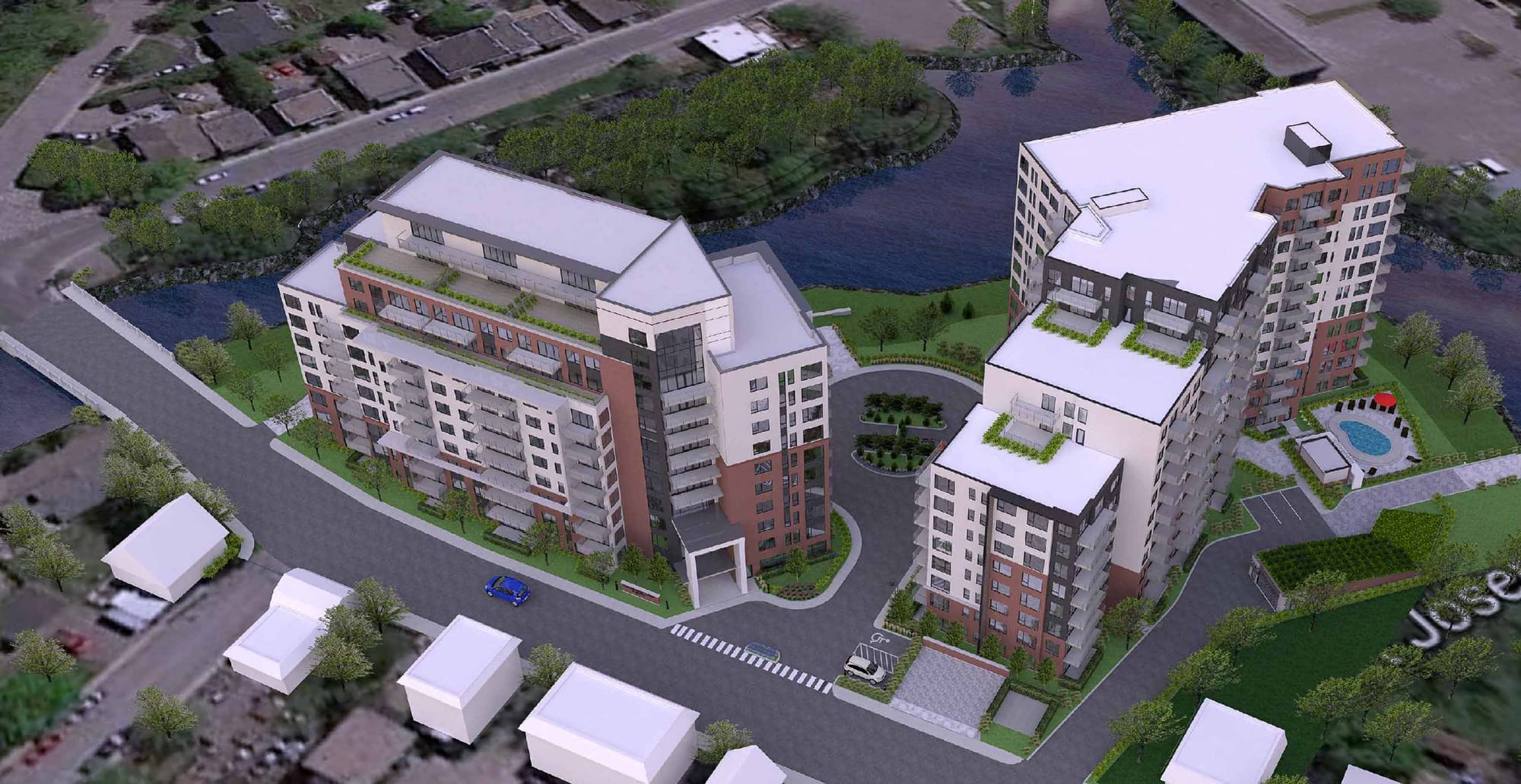 Sur la rue Saint-Joseph, Trigone prévoit ériger deux tours dont les étages supérieurs comporteront des aménagements en paliers afin de mettre en valeur la proximité de la rivière du Nord et mieux harmoniser les édifices avec les environs.