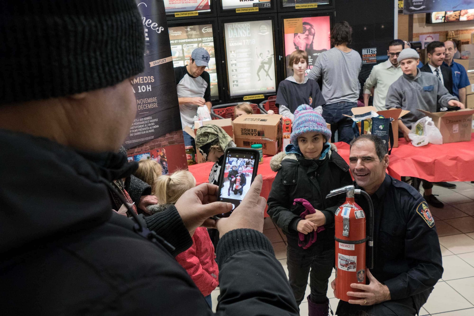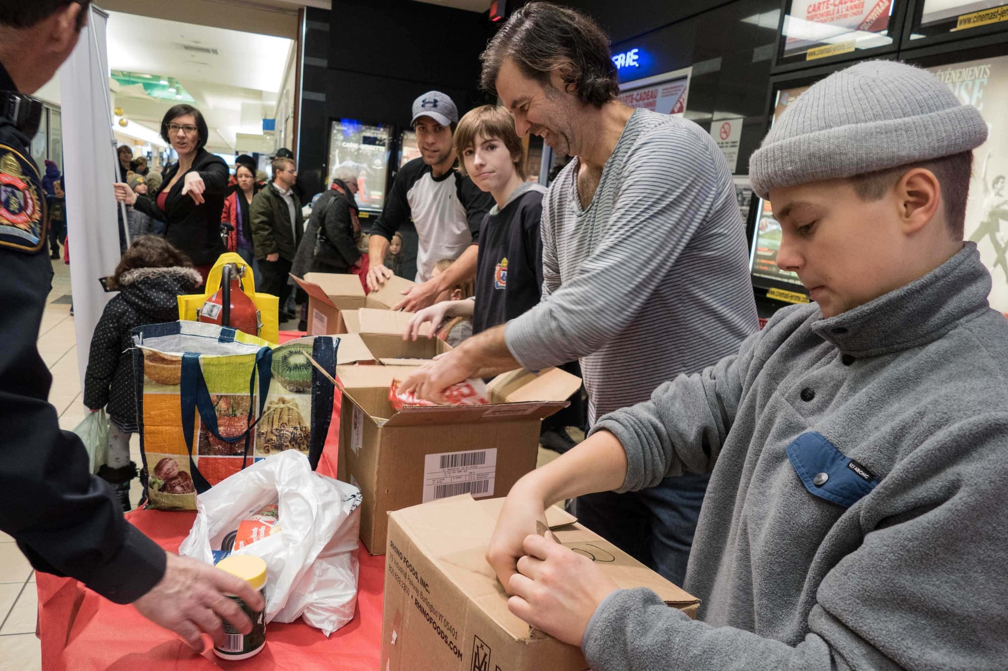 Ce sont les pompiers de Saint-Jérôme qui sont responsables de cette cueillette. Au final, les 5 collectes destinées à des paroisses différentes devraient permettre de construire 600 paniers qui aideront des familles à se nourrir.