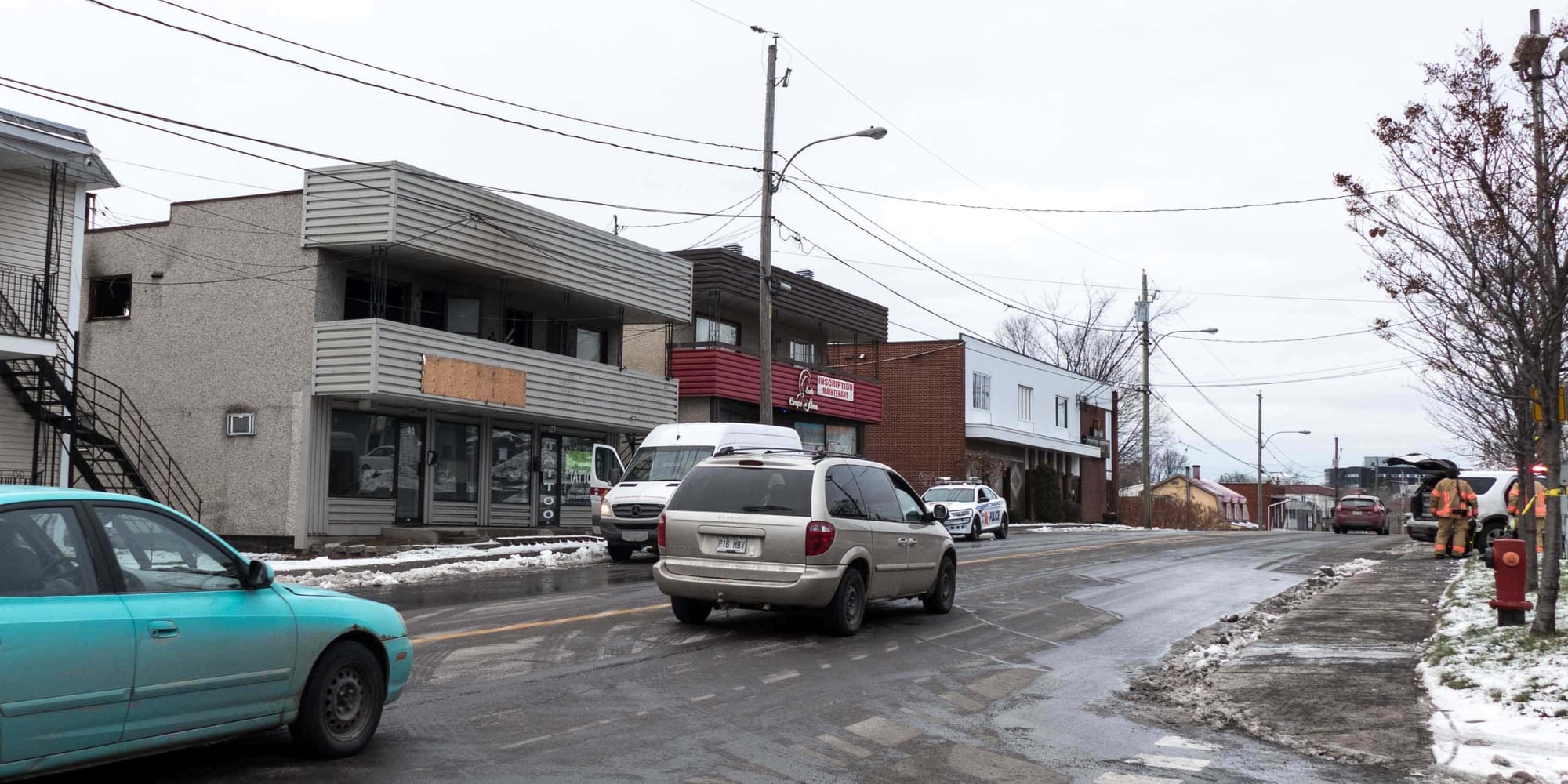 Pendant ce temps, d'autres pompiers de Saint-Jérôme étaient mobilisés par un incendie qui semblait avoir démarré à l'étage d'un édifice commercial de la rue Saint-Georges, voisin du restaurant Milano.