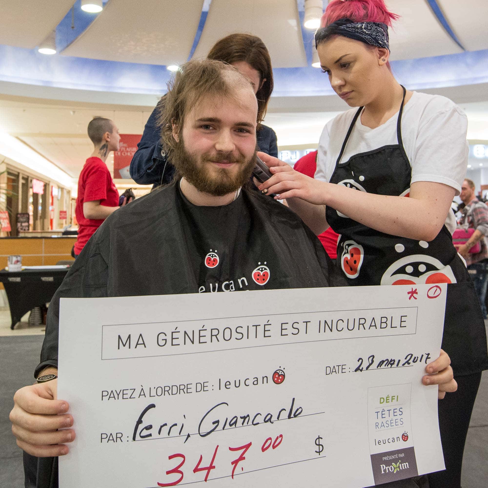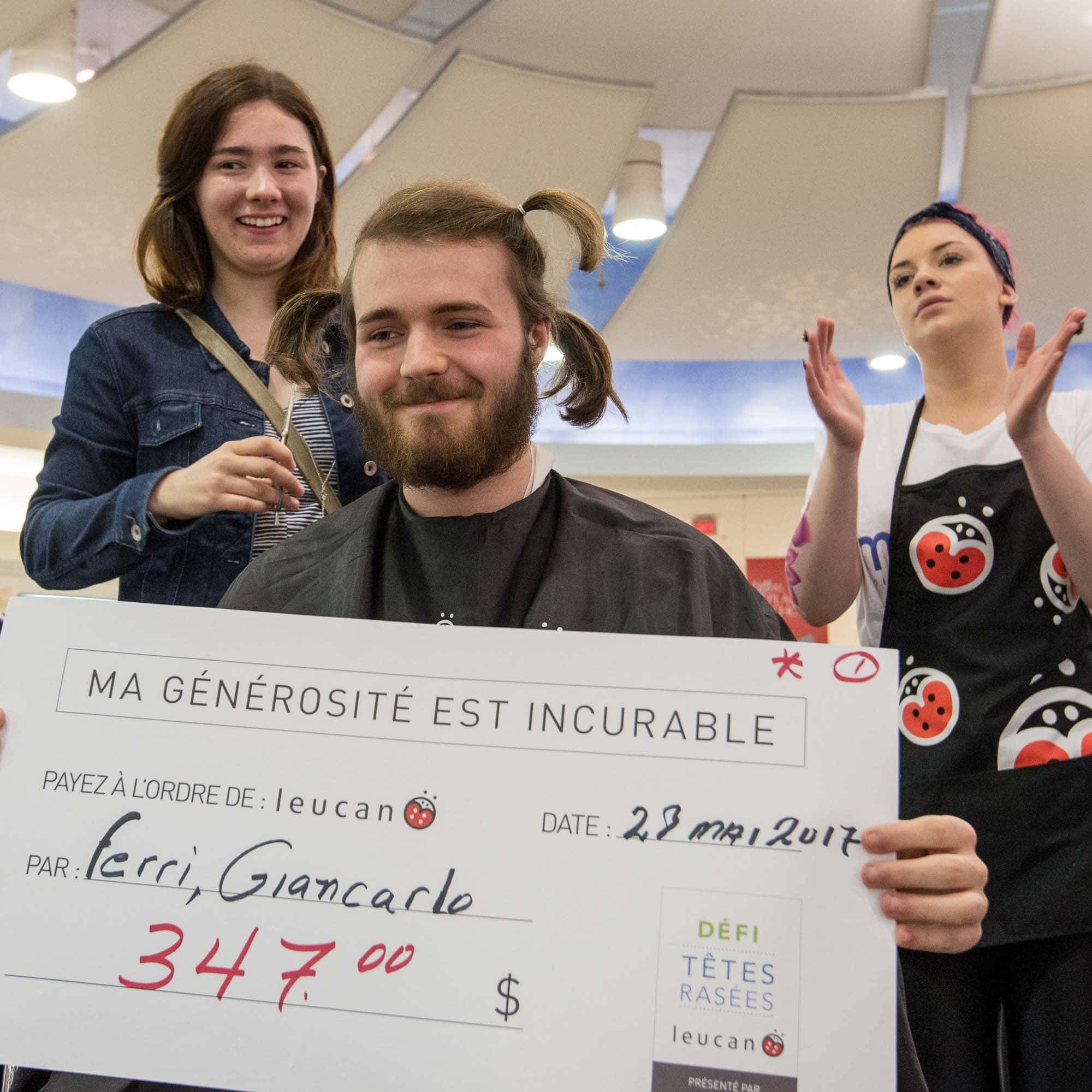 Giancarlo a décidé de participer au Défi têtes rasées pour rendre hommage à une bonne amie de sa mère qui a été victime du cancer. Son geste lui a permis de recueillir 347$.