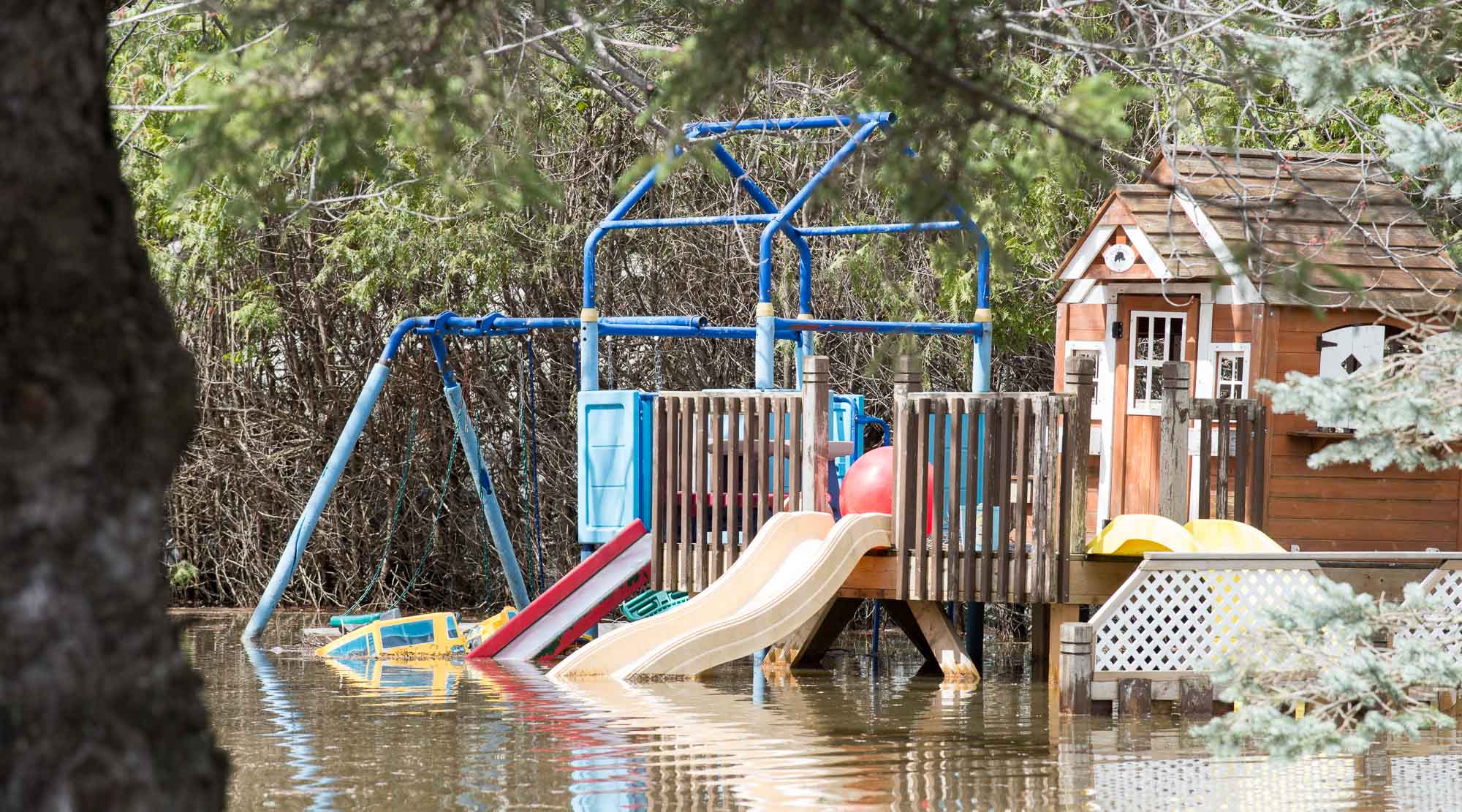 Quatre maisons inondées par la rivière du Nord à Prévost